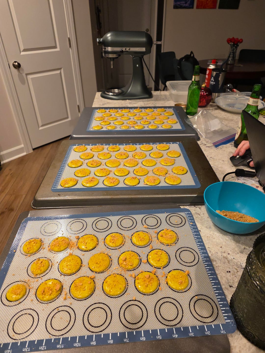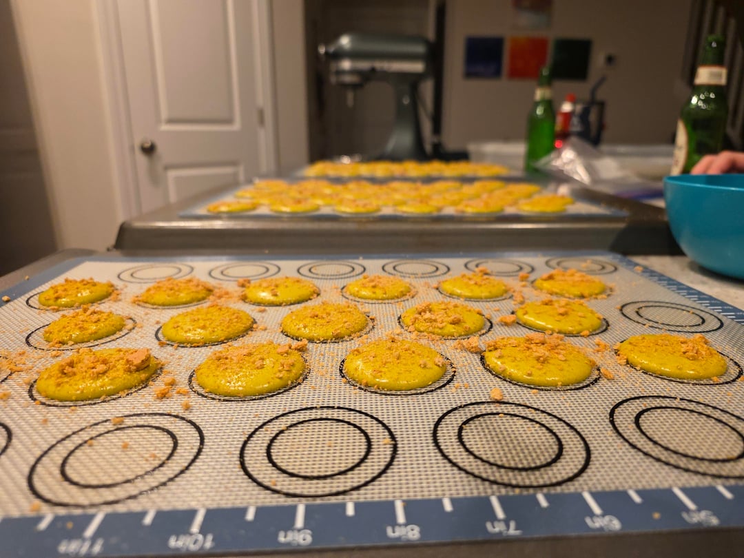 Learning a bit more about how to work my oven with macarons but I think I'm settling around 290°F for about 20 minutes to get feet and have them not be underbaked or overbaked (my past few attempts have gotten browned)