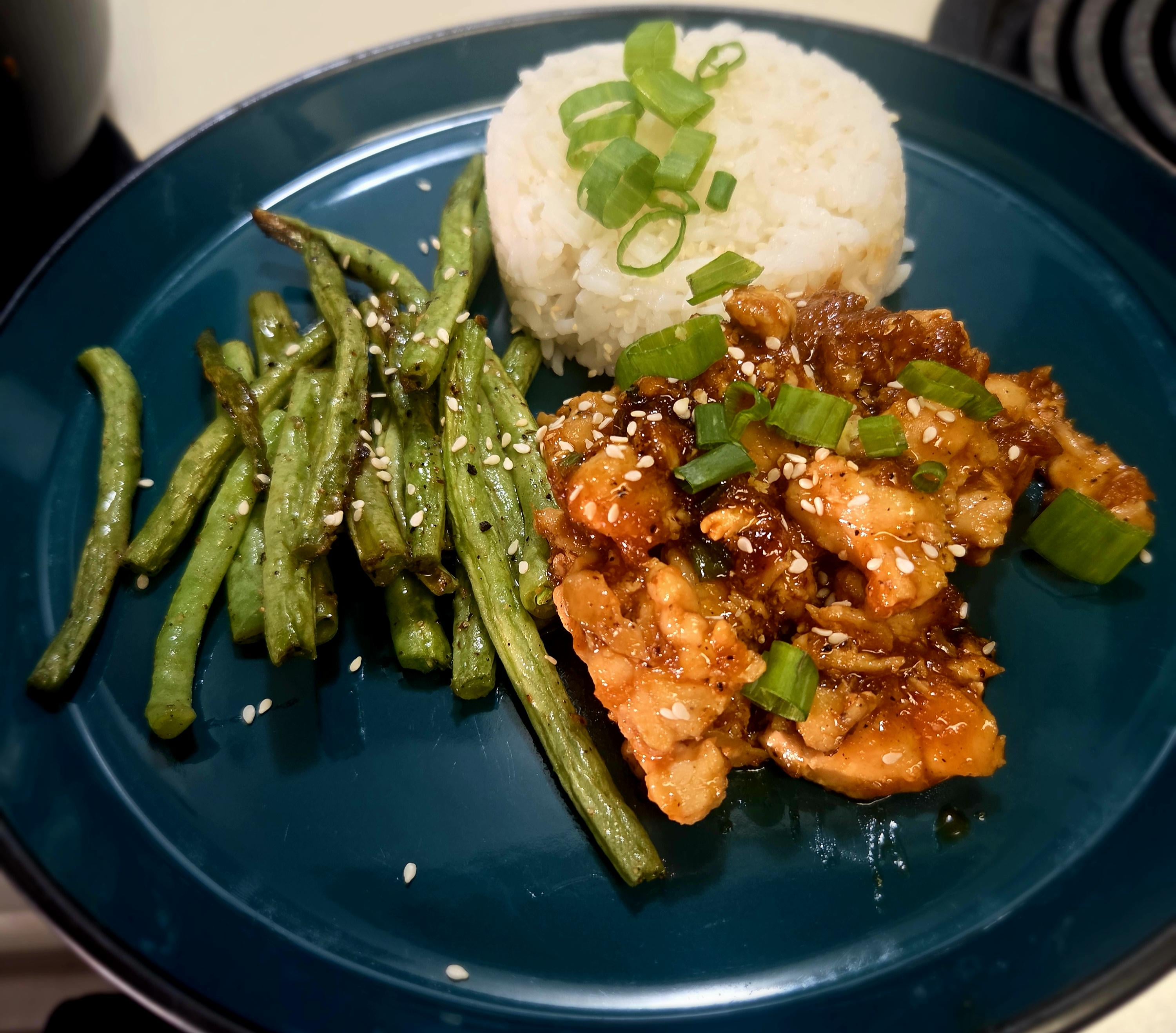 Sweet Soy Honey Chicken with Green Beans and Jasmine Rice