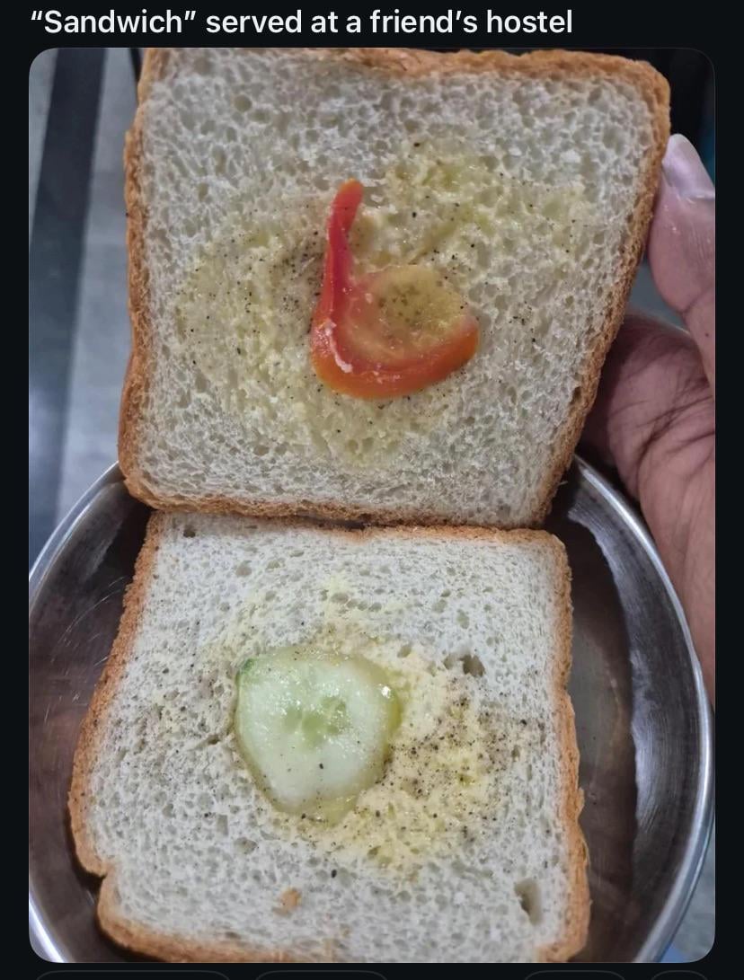 This is probably the 5th time that I have seen this sandwich. Unless the whole of reddit attends the same hostel lol