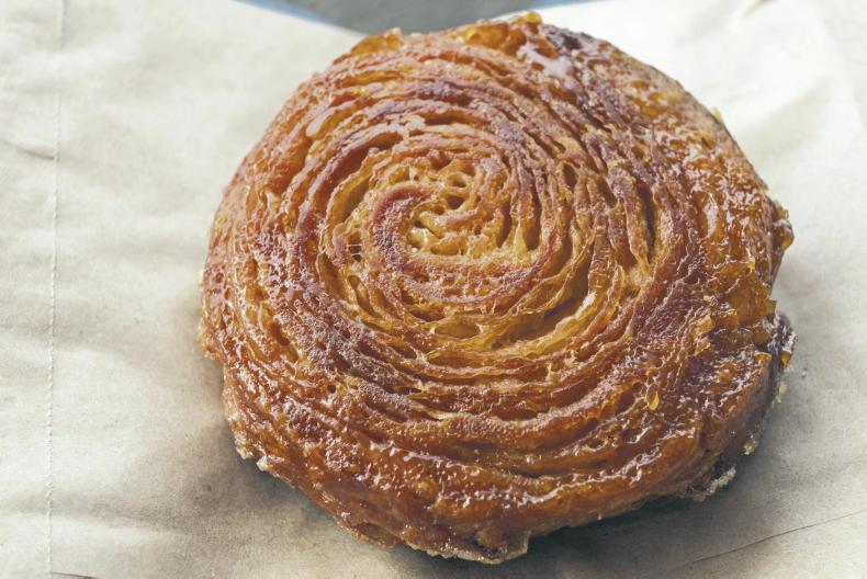 A classic Kouign-amann consists of thinly rolled bread dough layered with lots of sugar and butter before being baked to a perfect golden brown.