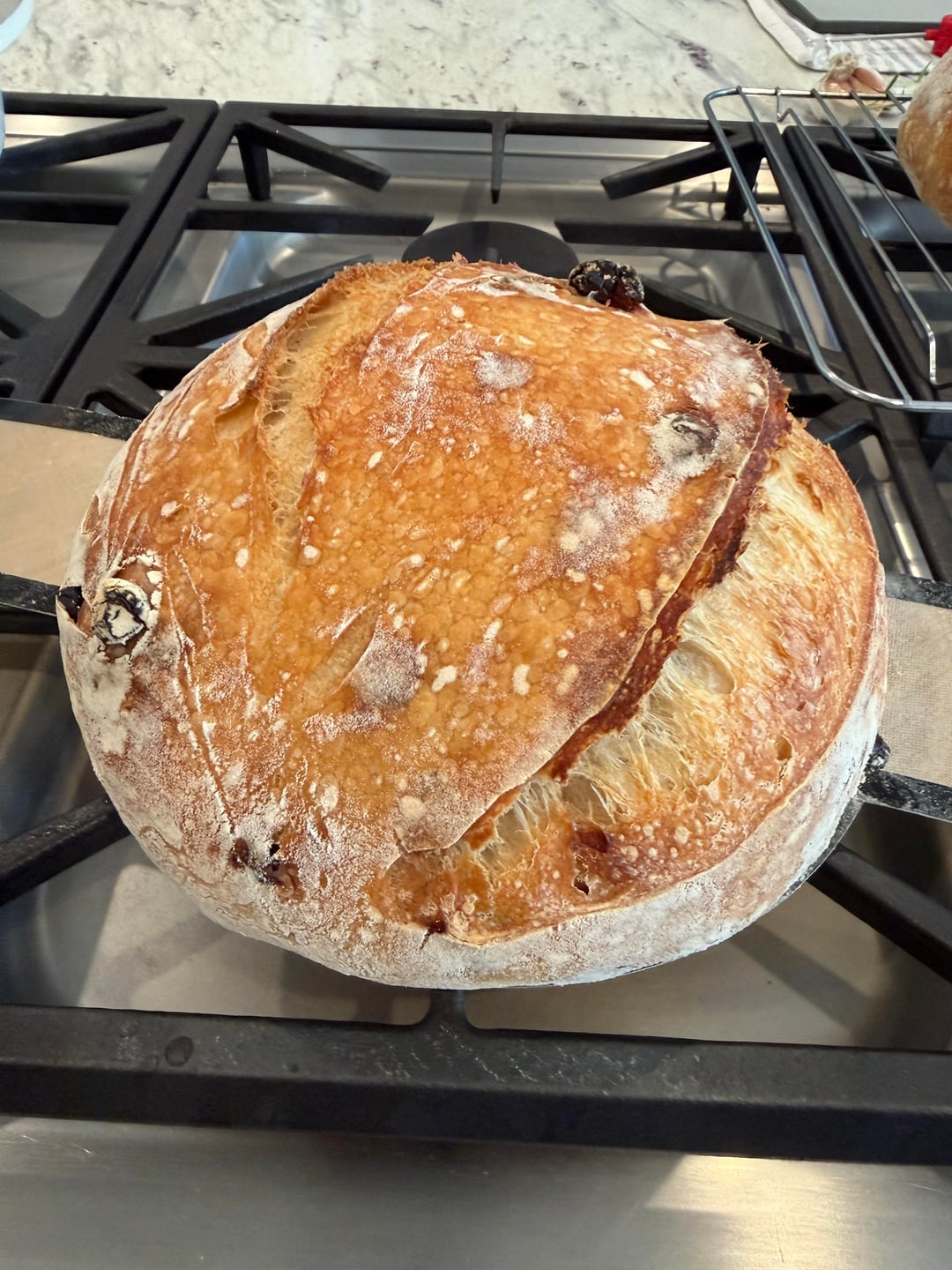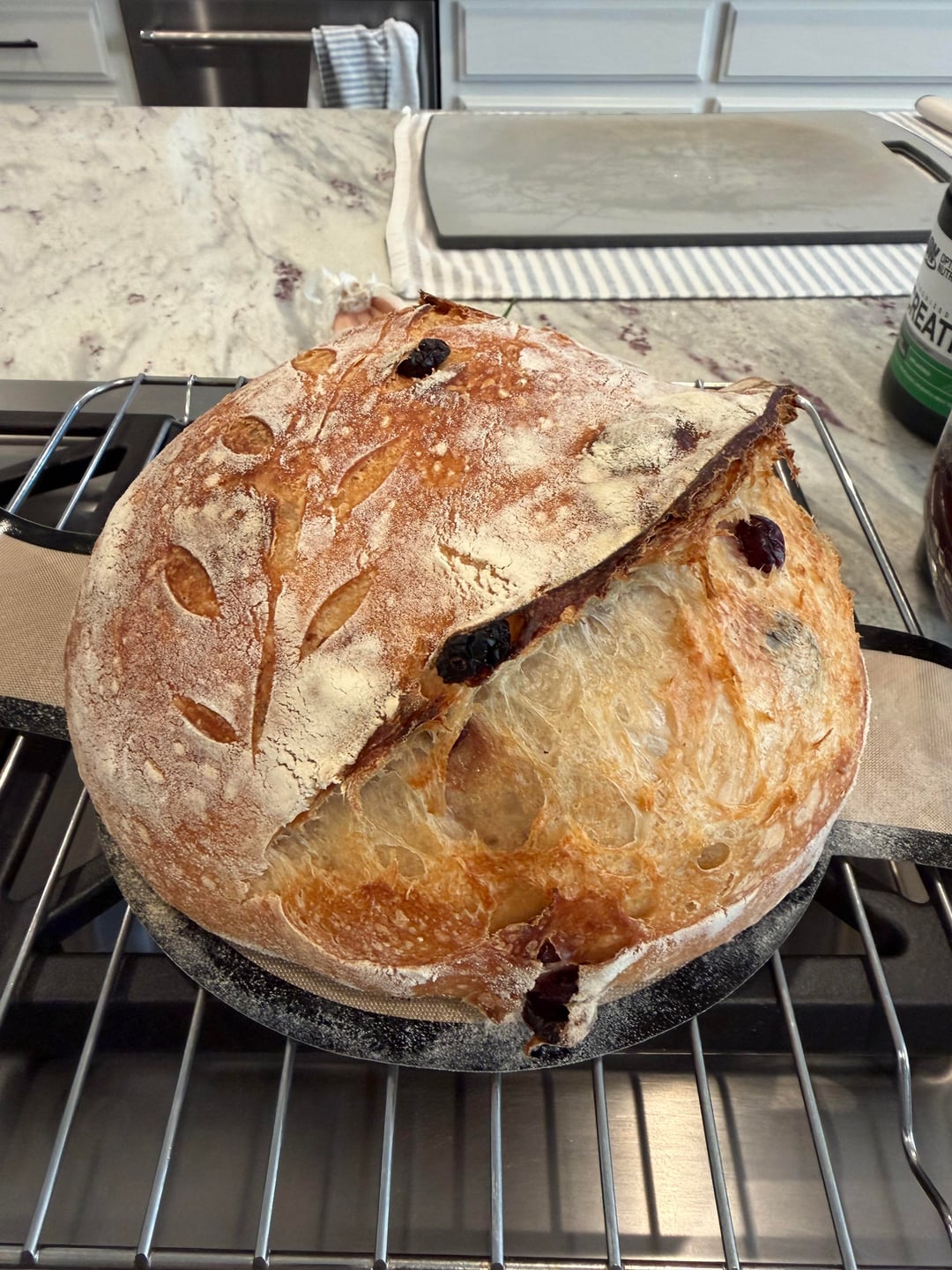 Oh! This is good to know. I just used that exact recipe with a 9 inch banneton. Now I gotta buy an 8 inch and try it.