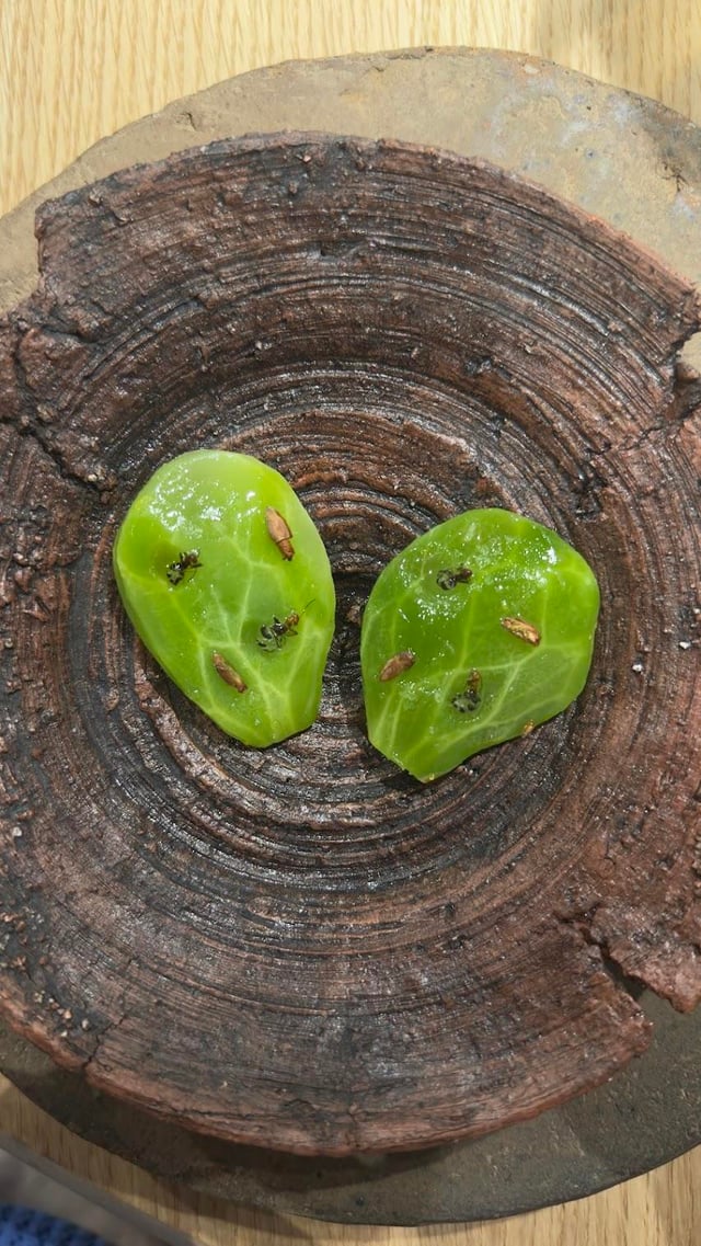 How did you eat the prickly cactus leaf with a spring of eucalyptus?