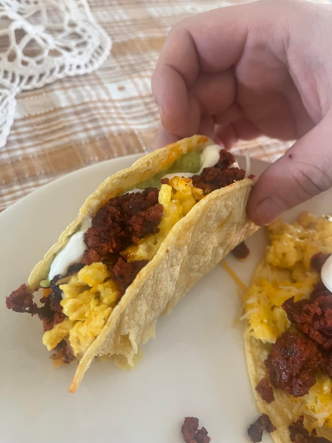 Chorizo and egg breakfast tacos