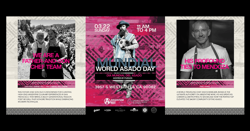 The event will take place at Fuegos LA and feature two seatings, from 11 a.m. to 1 p.m. and 1 p.m. to 4 p.m., with tickets priced at $50 per person. Guests will experience a five-course menu cooked over live fire, highlighting traditional Argentine asado techniques and premium cuts of Argentine beef.