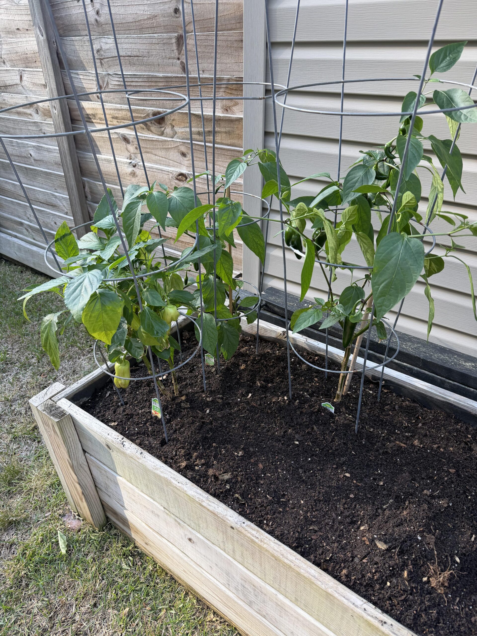 I overwintered two jalapeños and one lunchbox pepper this year. Never done that before. I had a poblano, but it died. But I’m pretty excited about how these turned out. Just relocated them into our raised bed today.