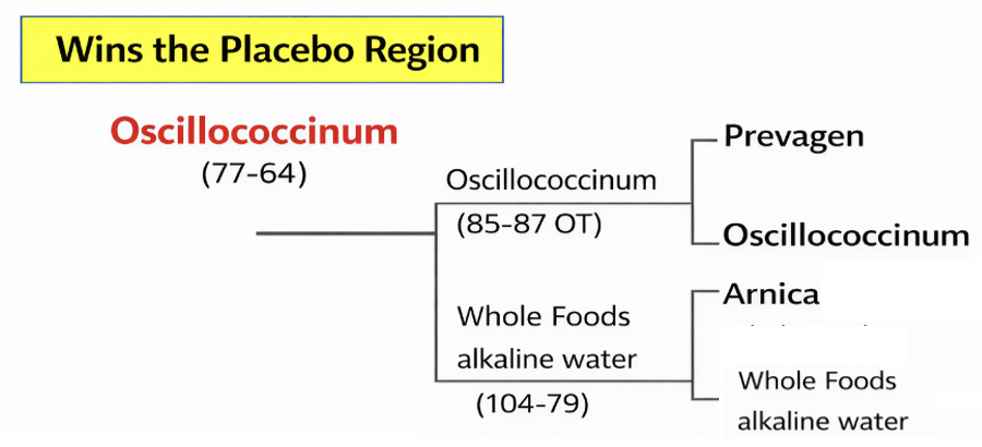 In the other semifinal, arnica took on Prevagen. Prevagen opened strong with its famous Jellyfish Memory Offense, but the playbook fell apart under even light defensive pressure from basic biology. Arnica pulled away in the second half and ran Prevagen out of the gym, 104–79, although no one could remember the final score. Perhaps the Prevagen could have come in handy.