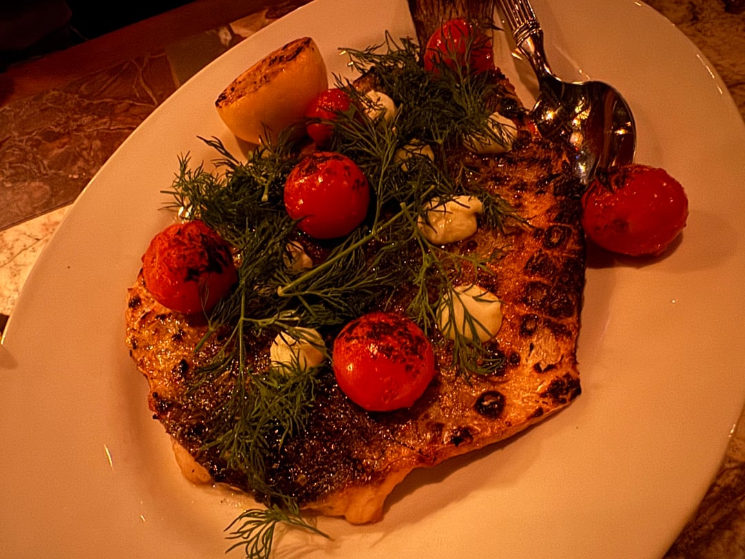 Charred nicely and topped with Calabrian chili, dill, and a lemony aioli. Very solid fish dish.