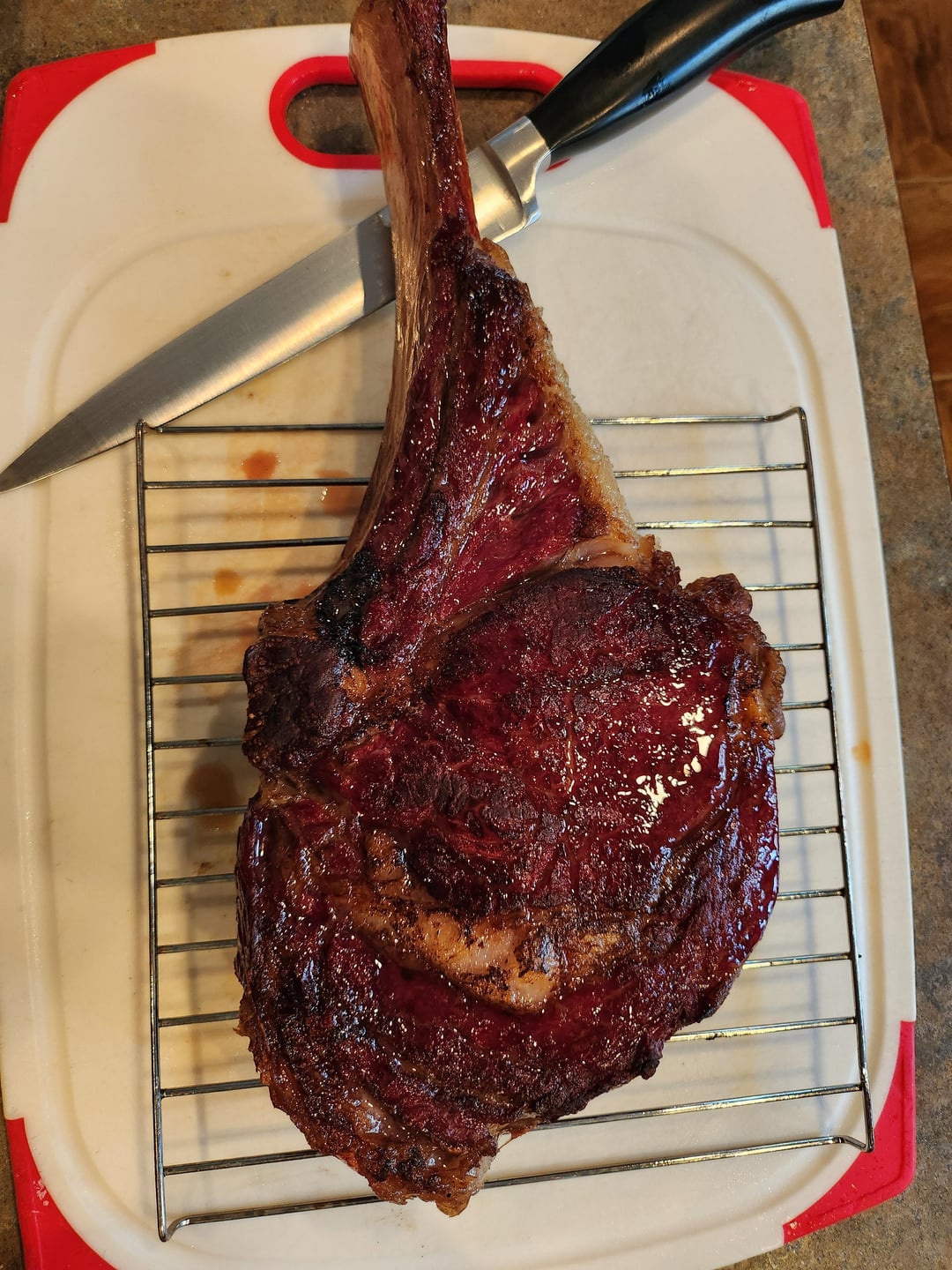 Found this on sale for $11/lb. Dry brined for 3 hours, then into the smoker (hickory @225) until it hit 125 and then a quick sear. Wish I had rested it after the smoker, and should have pulled it a bit earlier, but very happy.