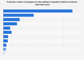 Instituto Nacional de Vitivinicultura (Argentina). “Production volume of red grapes for wine making in Argentina in 2024, by variety (in 1,000 metric tons).” Chart. October 23, 2024. Statista. Accessed March 21, 2026. https://www.statista.com/statistics/604556/red-grape-production-volume-argentina-by-variety/