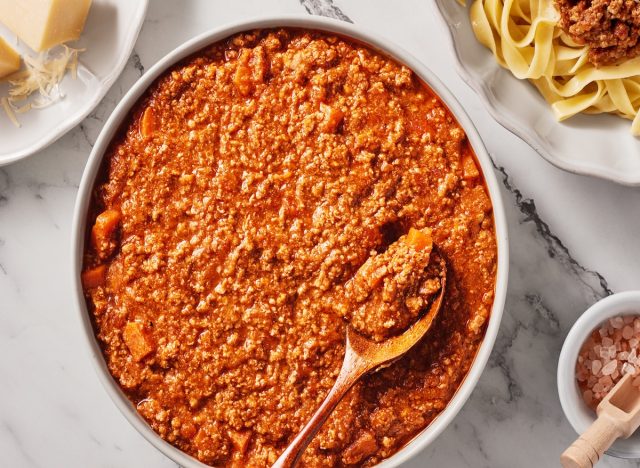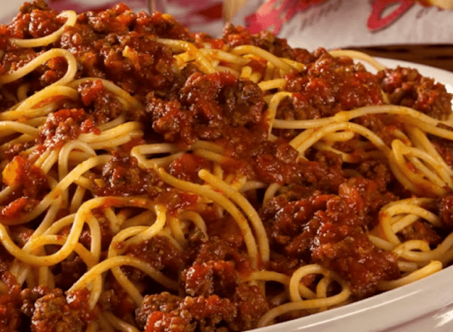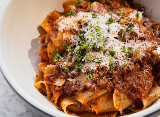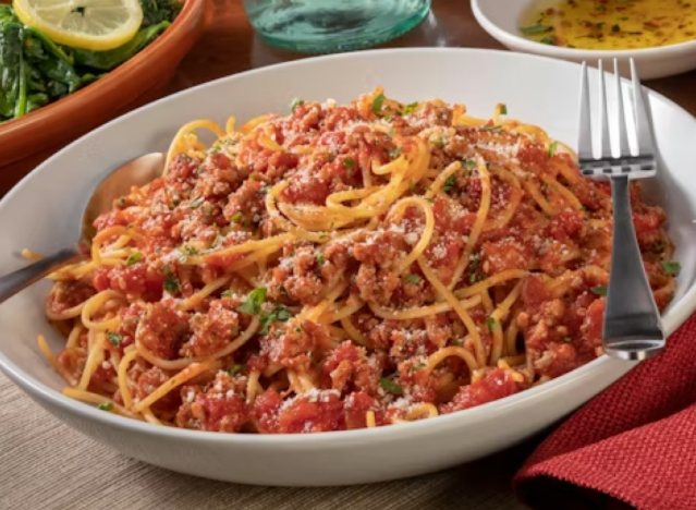 Bolognese is widely loved for its hearty, savory flavor, which combines slow-cooked meat with a base of onions, carrots and celery. The rich sauce is typically simmered for hours, enhancing its flavor and pairing perfectly with pasta. While the classic Italian sauce can be difficult to perfect, some chain restaurants manage to deliver impressive versions that rival homemade. To find the standouts, Eat This, Not That! asked Dennis Littley, Chef and Culinary Expert at Ask Chef Dennis, to share the chain restaurants that serve some of the best Bolognese.