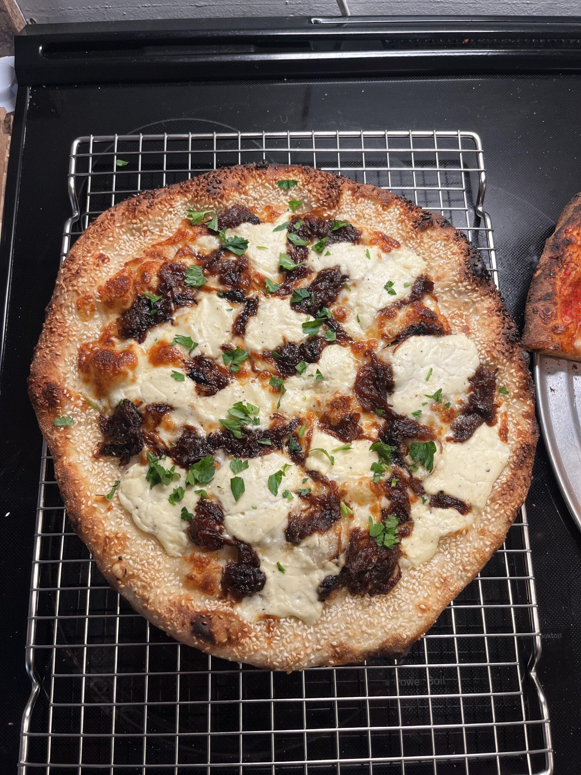 This is my recreation of a pizza from Best Pizza in Brooklyn. It has lemon ricotta, sesame seeded crust, fresh parsley, and the best addition which is caramelized onions. In my opinion it’s perfect. The onions add such a sweet flavor. Just wanted to share my favorite pizza. The onions are the star of the show!