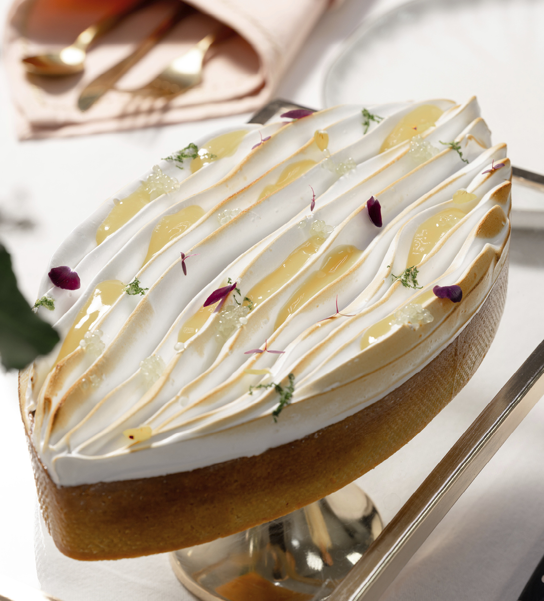 Selecting ingredients begins when I discover a new taste, smell, or texture, something I experienced during my travels or in my childhood. I love discovering unique ingredients from around the world and incorporating them into my pastries, and the Middle East is no exception. I recently created a recipe using lumi, a sun-dried lime. The cake is paired with black lemon jam and jasmine mousse; the flavour is sour and citrusy, while the mousse carefully balances the acidity.