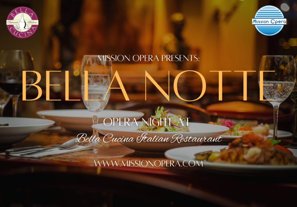 Details: Indulge in an unforgettable evening of fine dining and world-class music at Mission Opera’s monthly Bella Notte Opera Night! Enjoy a 5-course authentic Italian meal while being serenaded by the exceptional singers of Mission Opera. Your ticket not only supports local arts organizations (Mission Opera), but also local business (Bella Cucina).