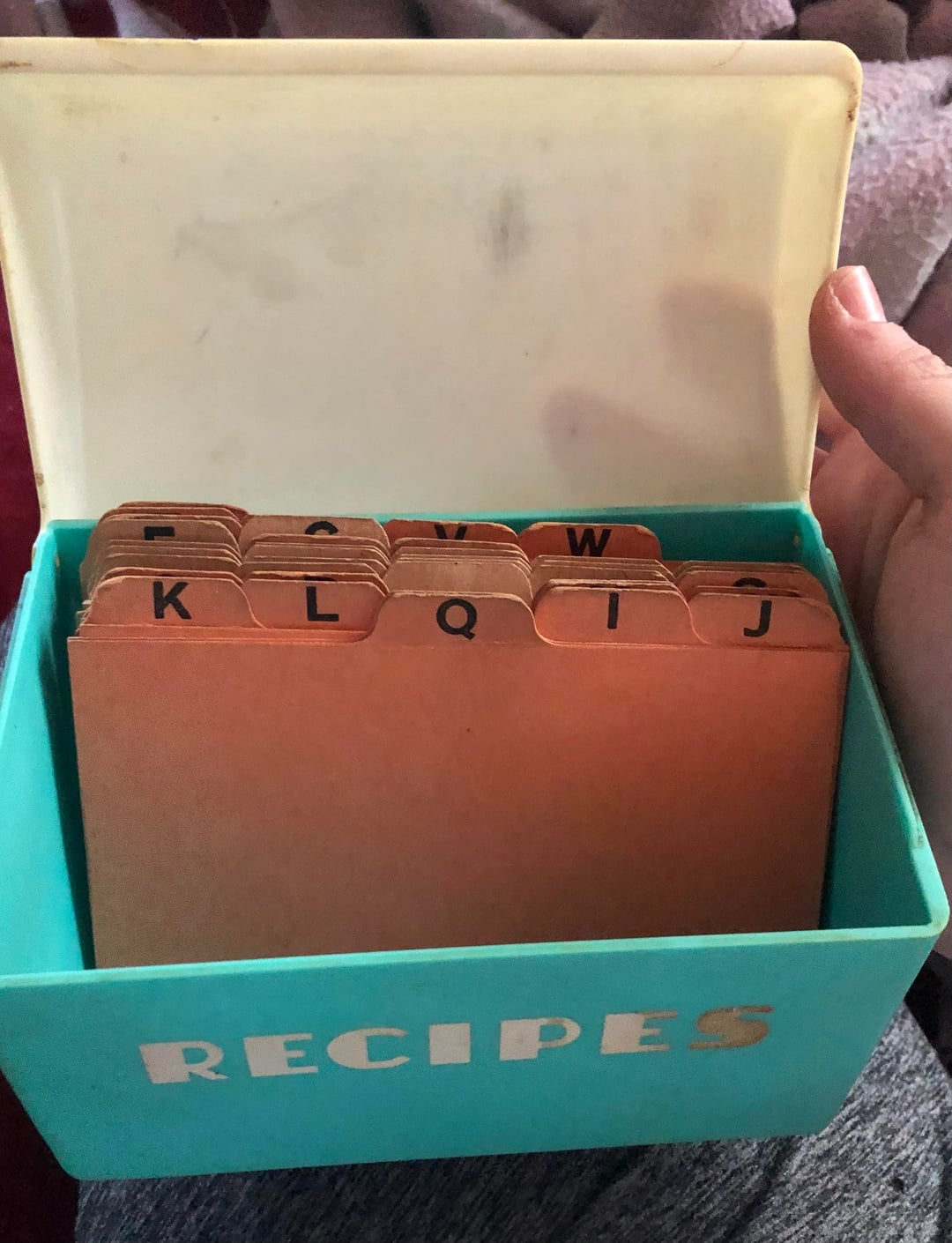 I loved how cute this recipe box was and was thrilled to find some old recipes inside. Thrifted in South Carolina.