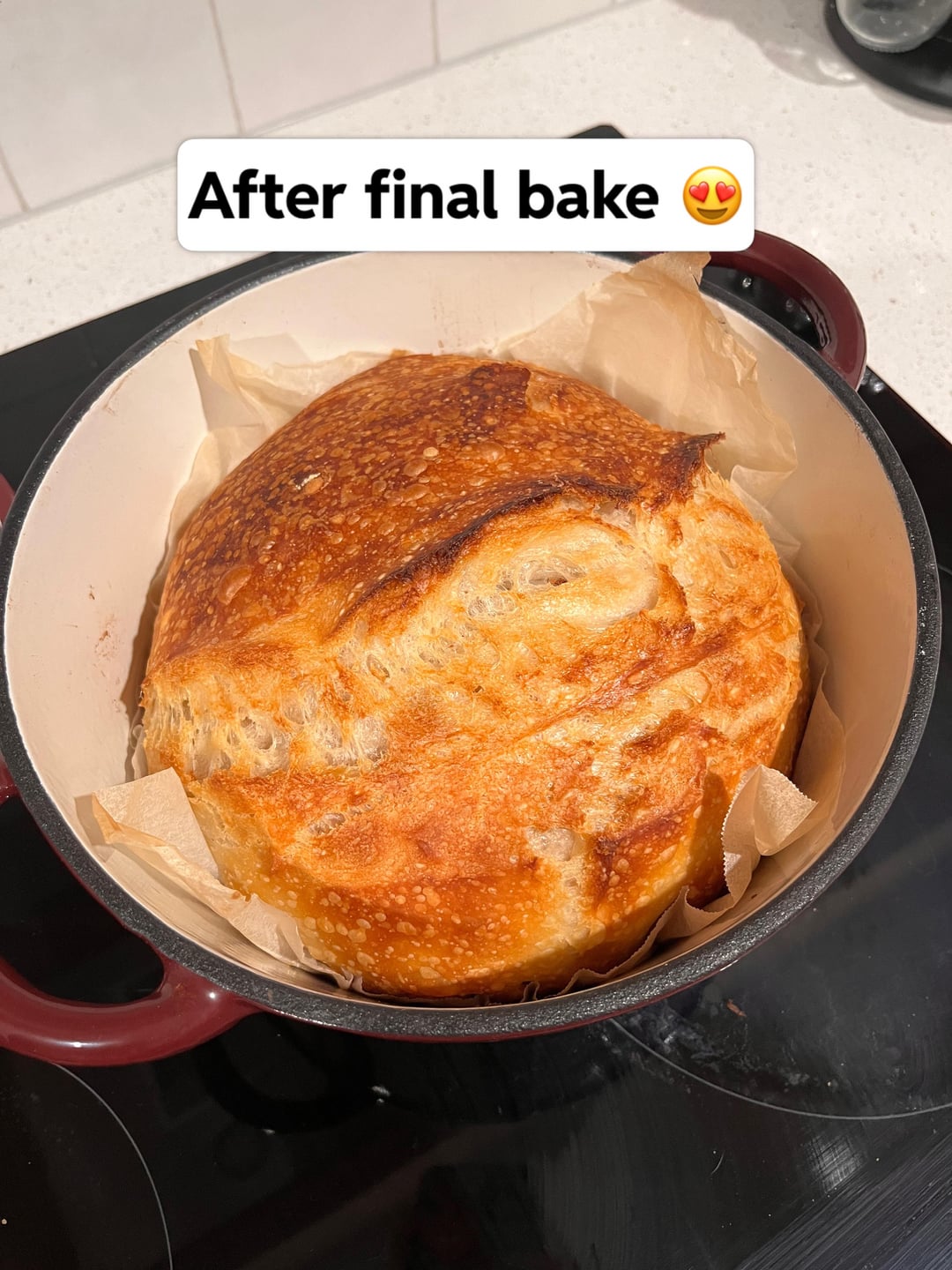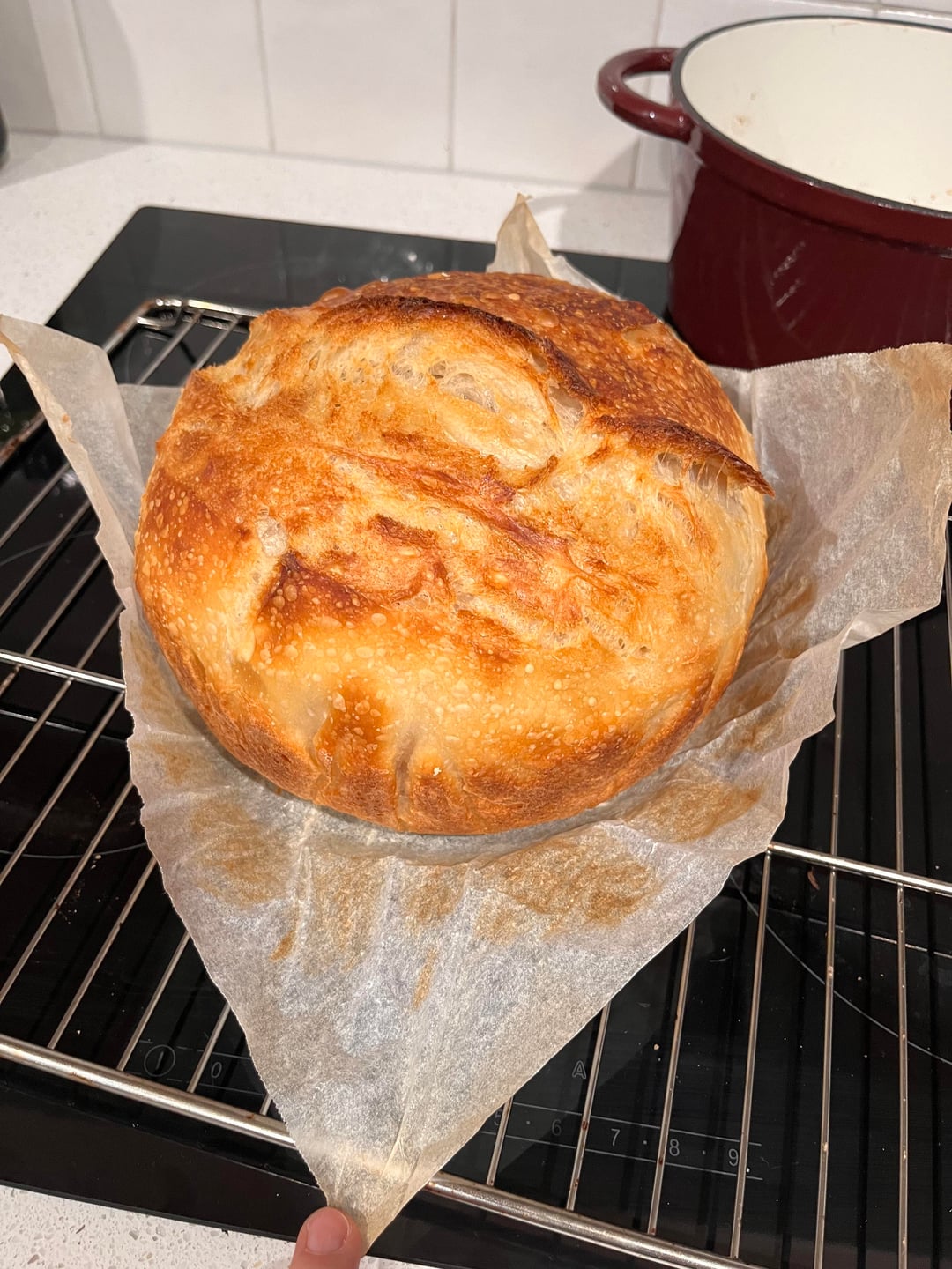 Well done that looks great. I need to get a Dutch oven because I’ve been using a silicone pan for the baking. I’ll be making my 3rd loaf in a few days