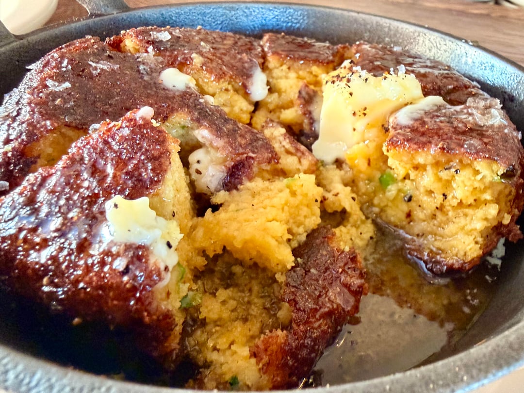 EDNA'S SOUR MILK CORNBREAD ($21) with white cheddar, hatch chile, cultured butter, honey