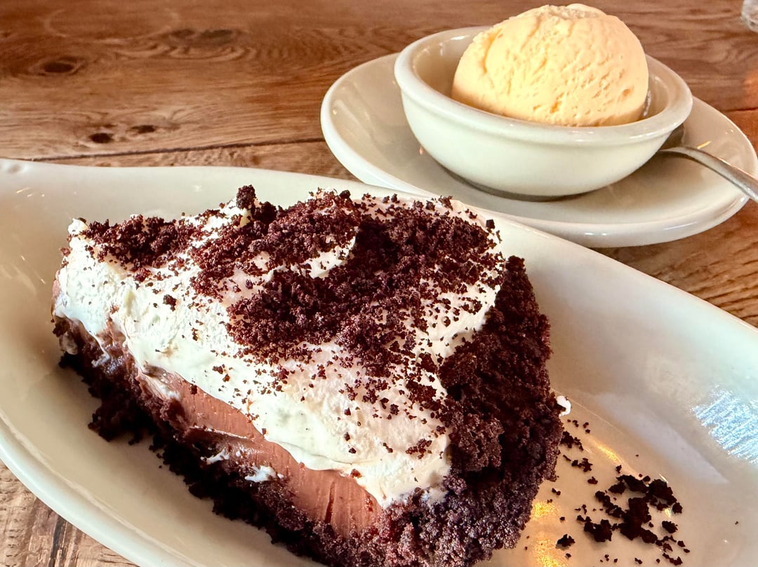 The chocolate malt pie tastes like a chocolate malt. But its generous portion and chunky solidity eventually reminded me of something you might find at a Cheesecake Factory.