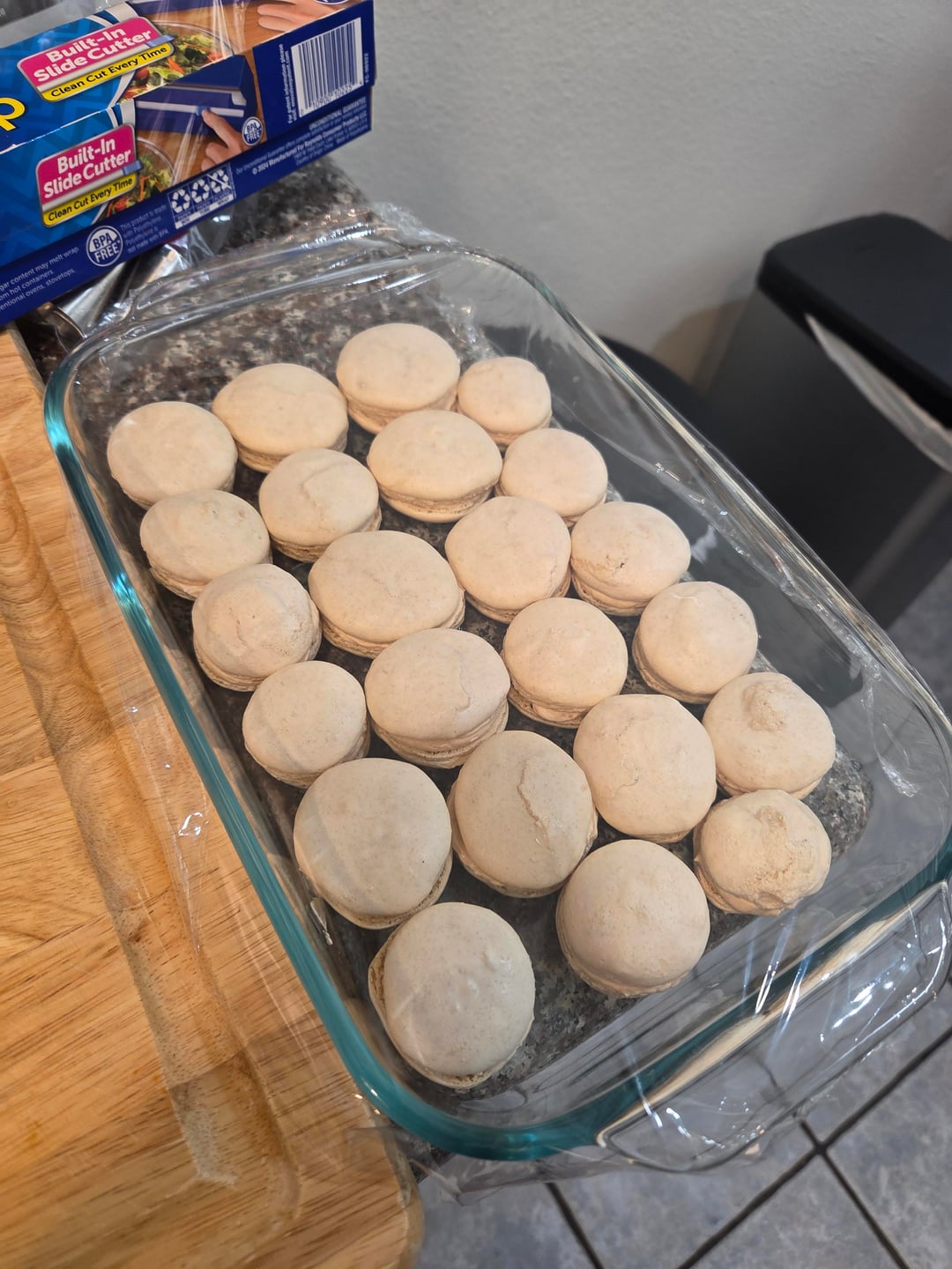 I think if I were to do these again, I'd probably invest in one of those specific macaron silicone mats with the measured circles since I had some issues keeping the size consistent when piping the batter.