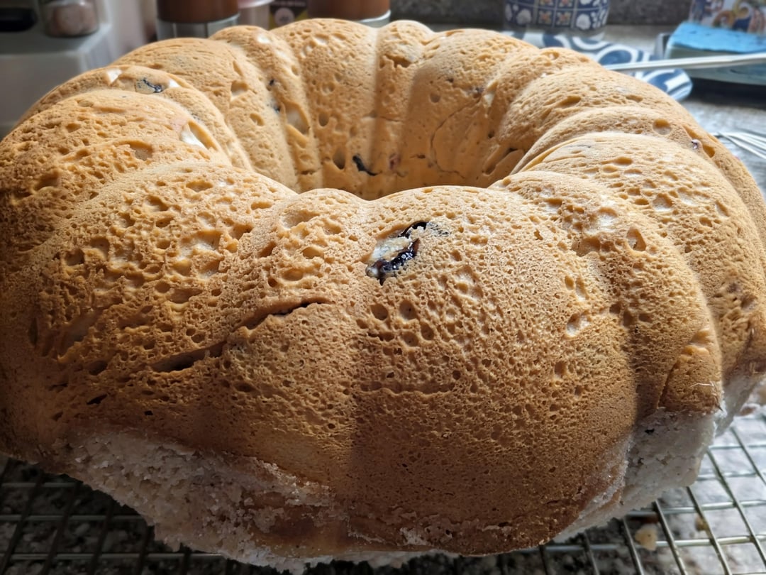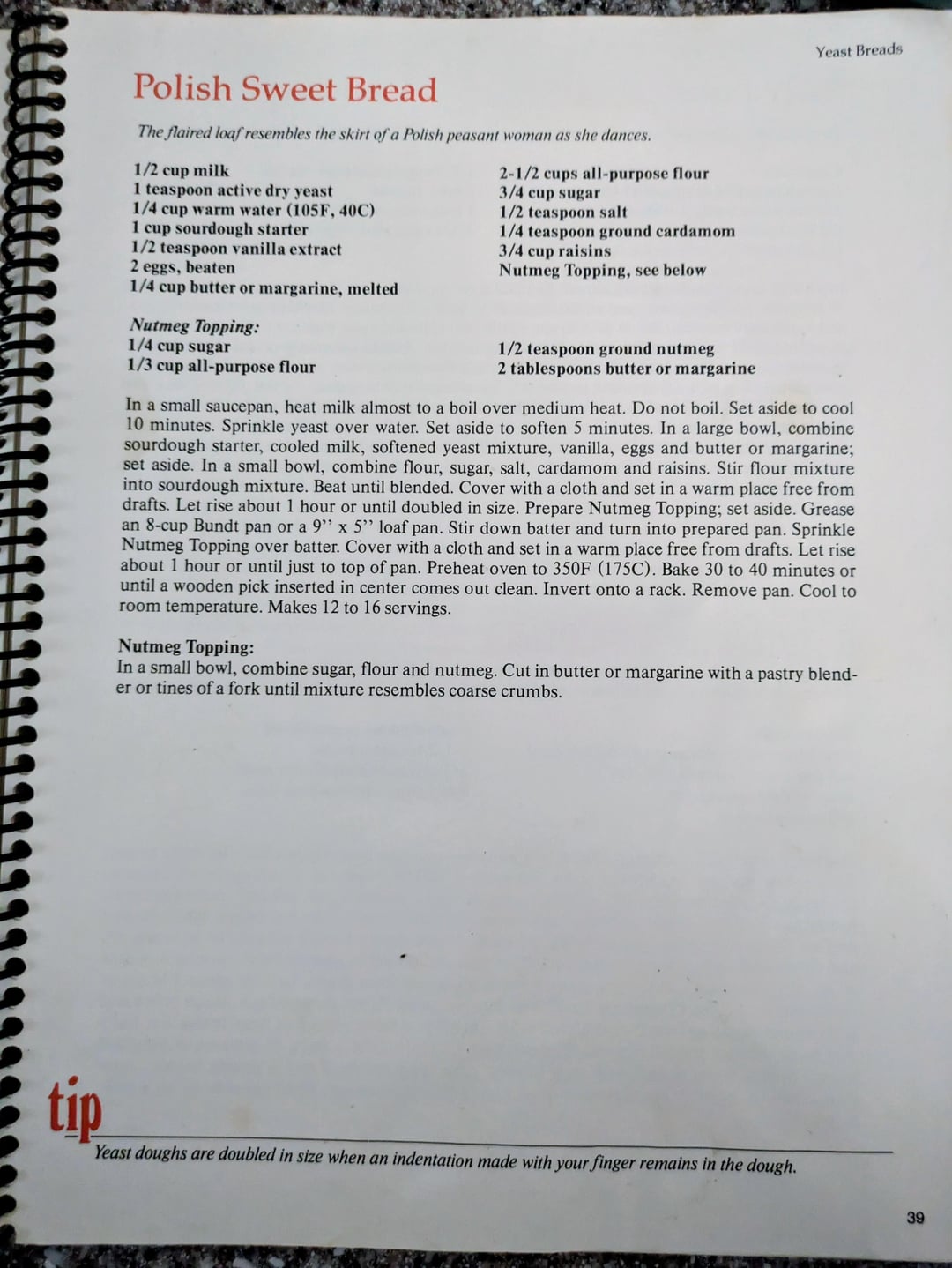 Today, I tried the Polish Sweet Bread recipe. It's a bit more of a cake than a bread (batter in a Bundt!) with a pale streusel on the bottom when inverted. My usual sweet recipe from this book is the Sally Lunn.