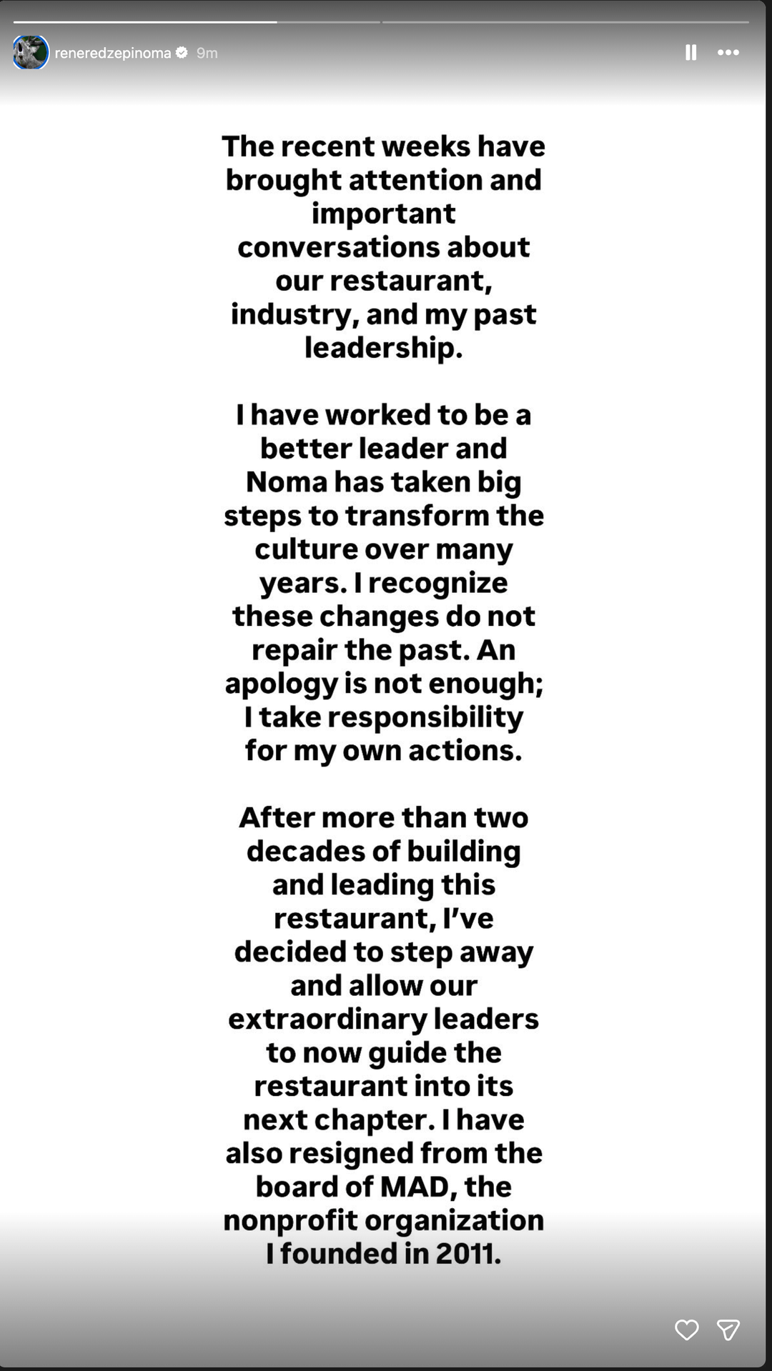 René Redzepi to step away from Noma, resign from MAD