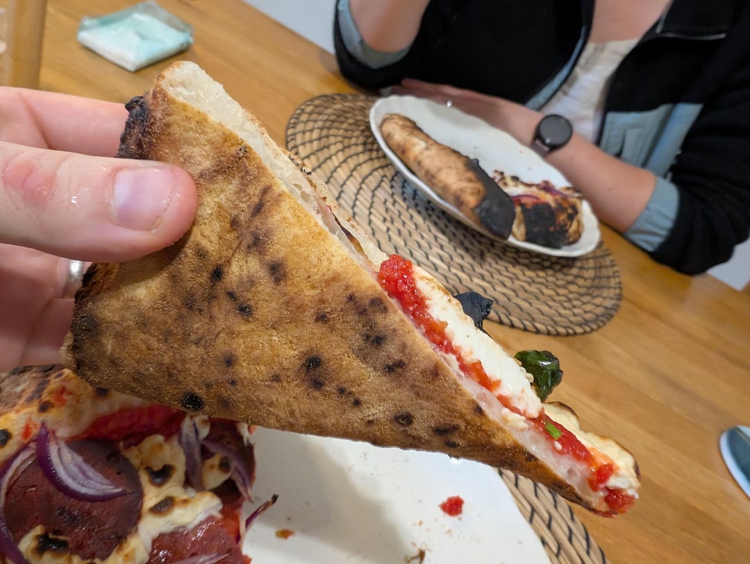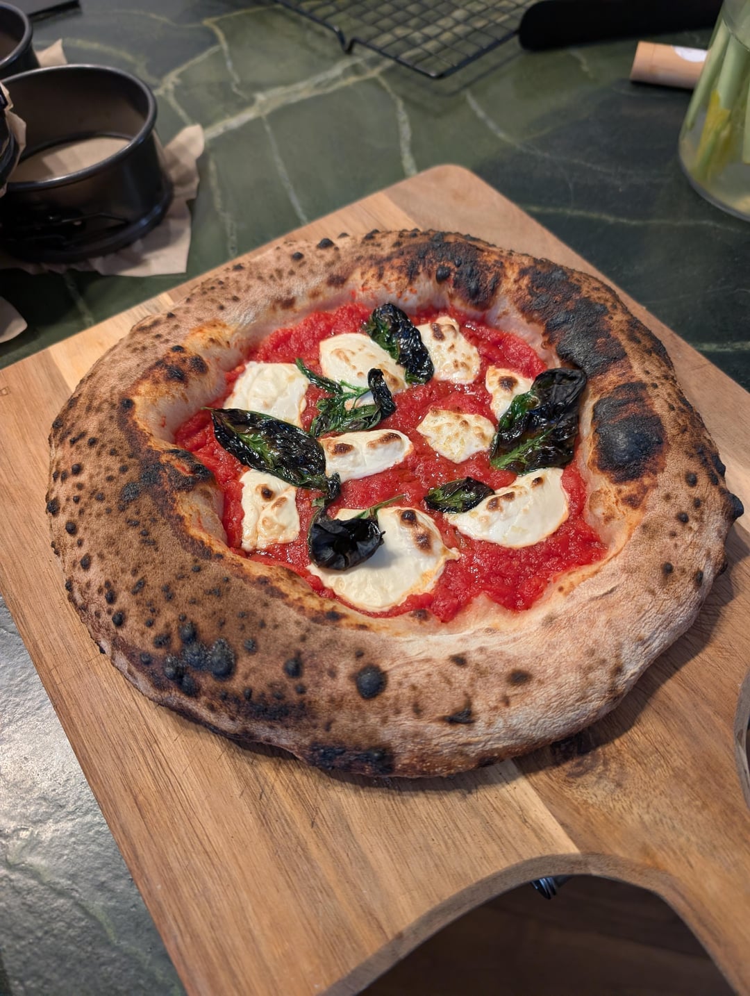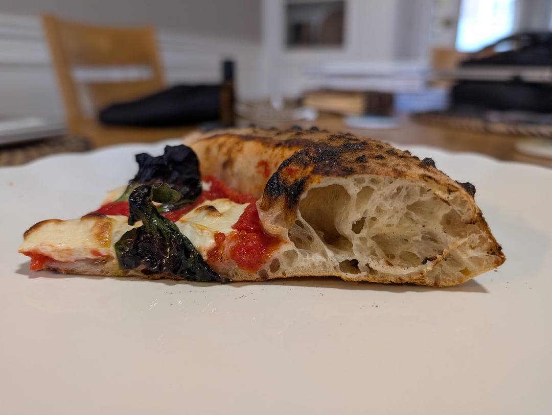 The dough is quite workable despite being incredibly soft and with a super hot stone the oven spring is noticeably better than other recent doughs I've made.
