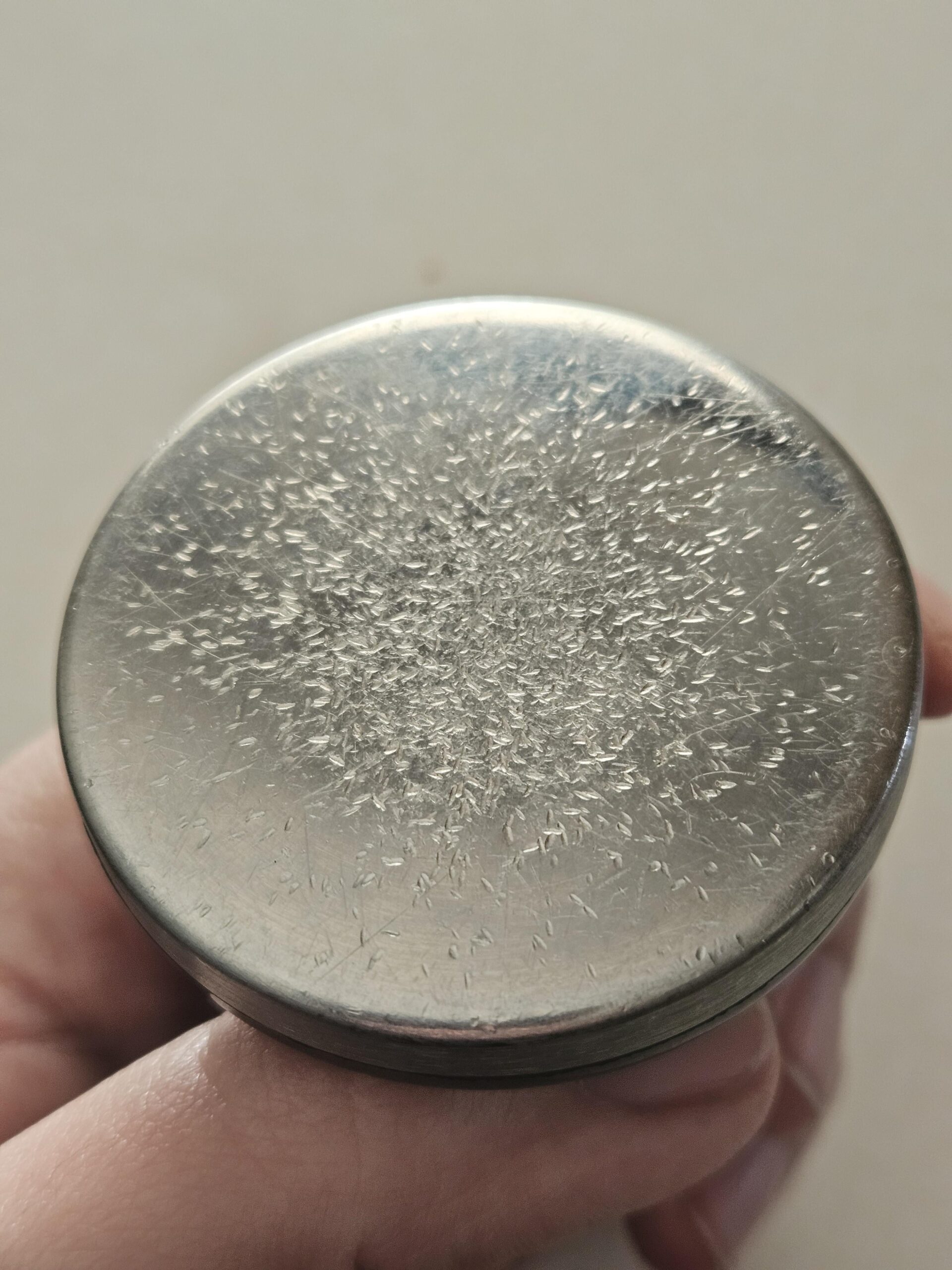 That’s actually the new normcore laser microtexturized force tamper. The small and randomly distributed peaks and valleys on the face of the tamper form a normal distribution where the edges have less texture than the center. This creates a very tiny and controlled amount of channeling or flow increase towards the center to match the type of flow that the edges of the basket receive. This makes an overall more even and consistent extraction.