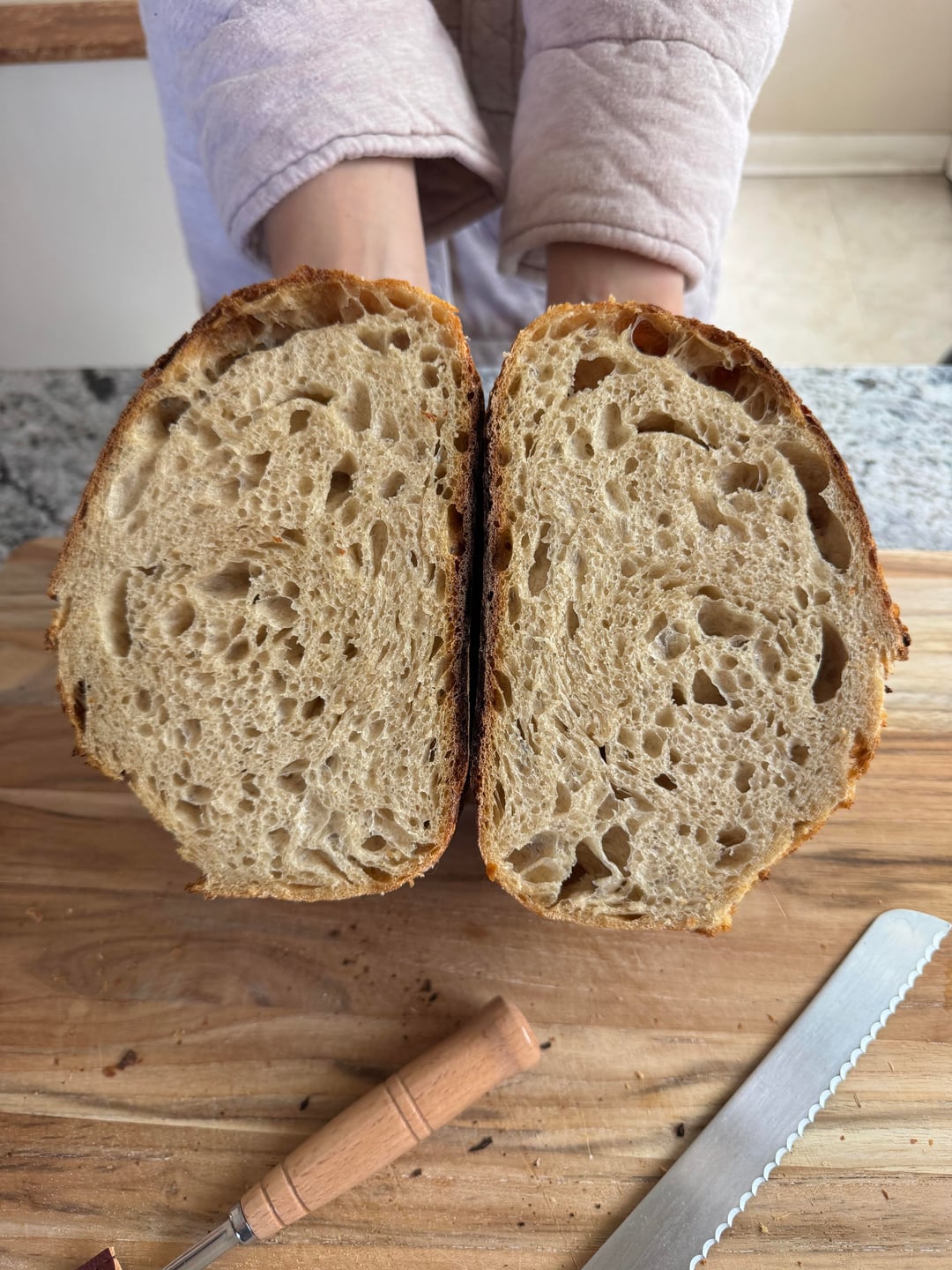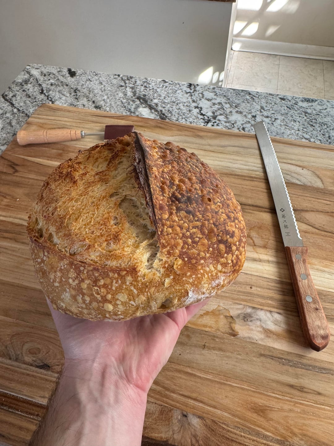 I’m pretty happy with it. Next time I’ll work on scoring and maybe shape a little less tight to open up the crumb a bit. I could probably increase hydration if I wanted to as well.