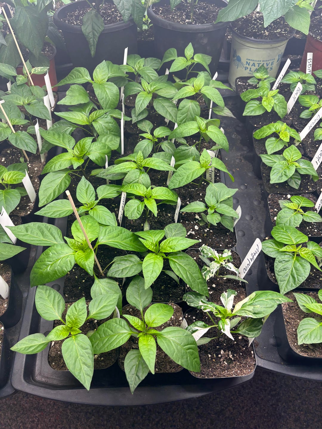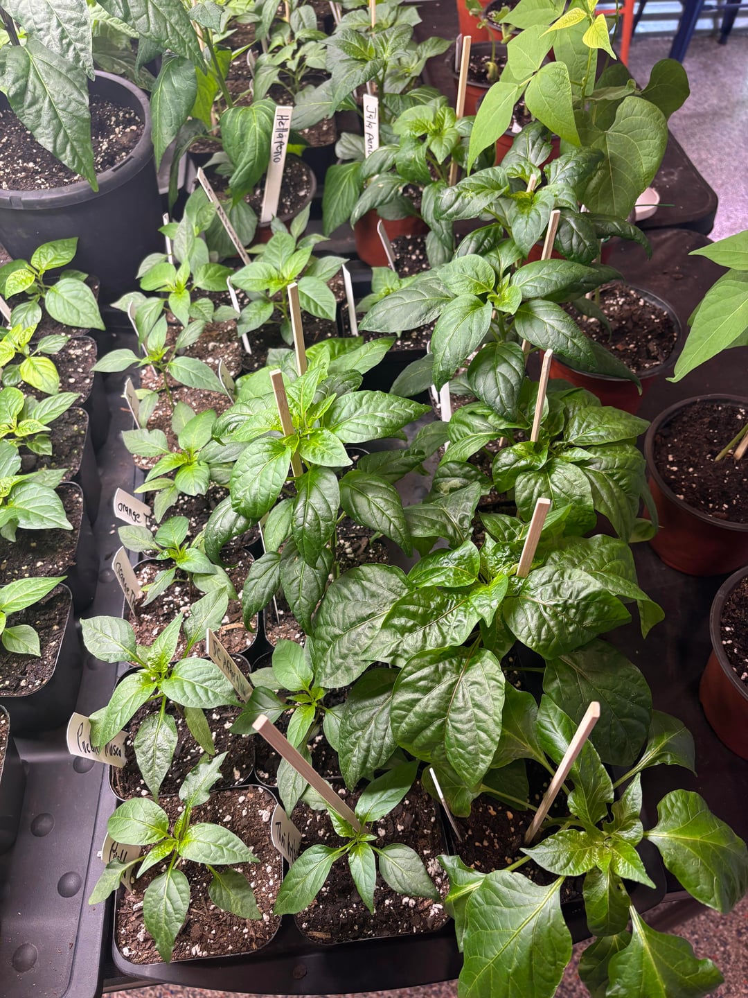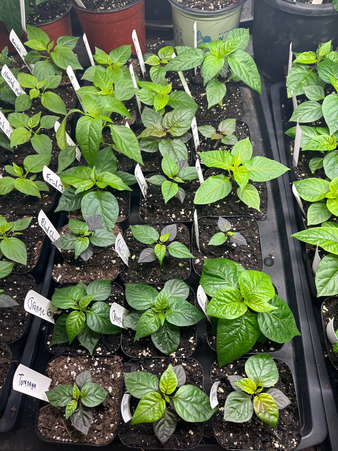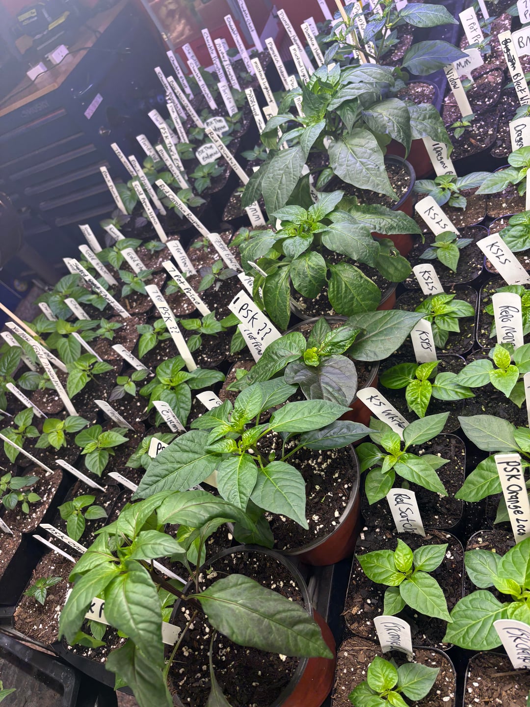The peppers are looking good! We will have 500 plants this year of 148 varieties. This includes 5 of our crosses. Currently they are still in the grow room but they will go to the greenhouse in a couple of weeks. We also have around 25 growing in a hydroponic system.