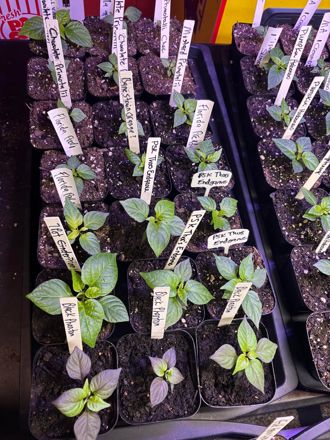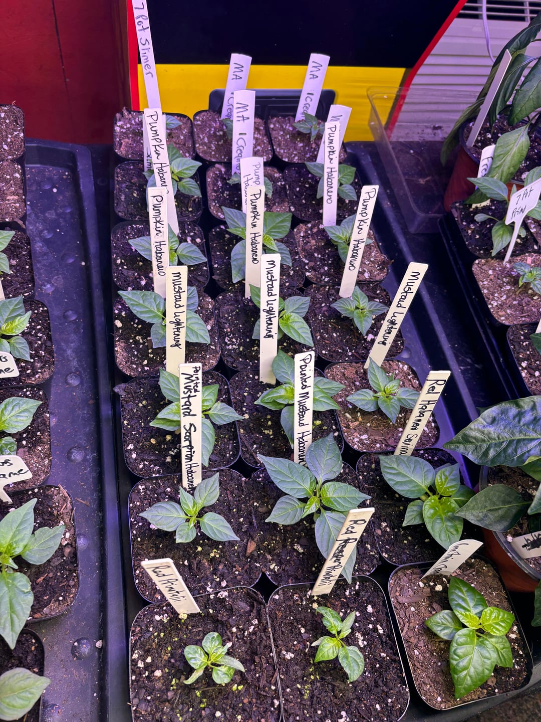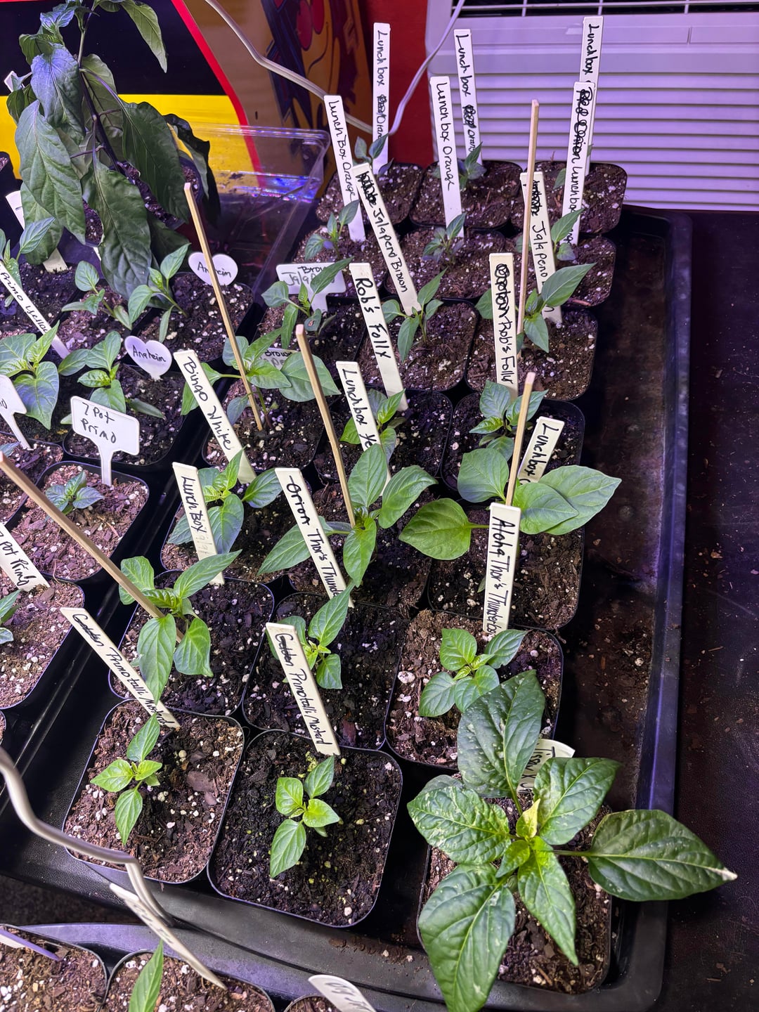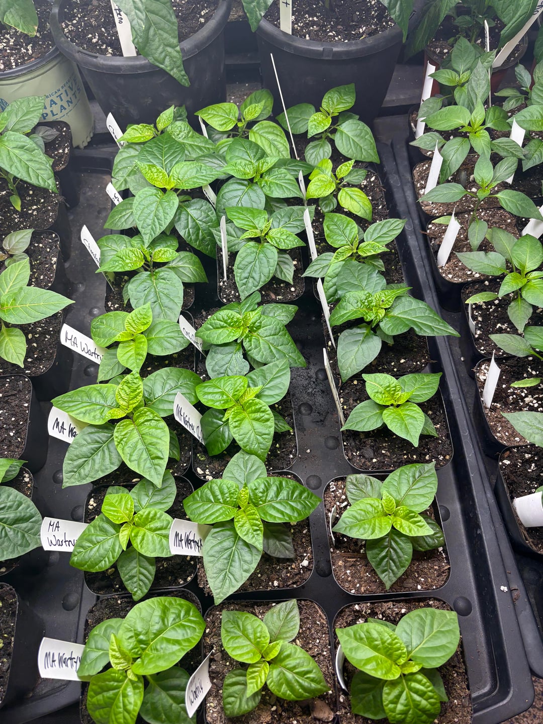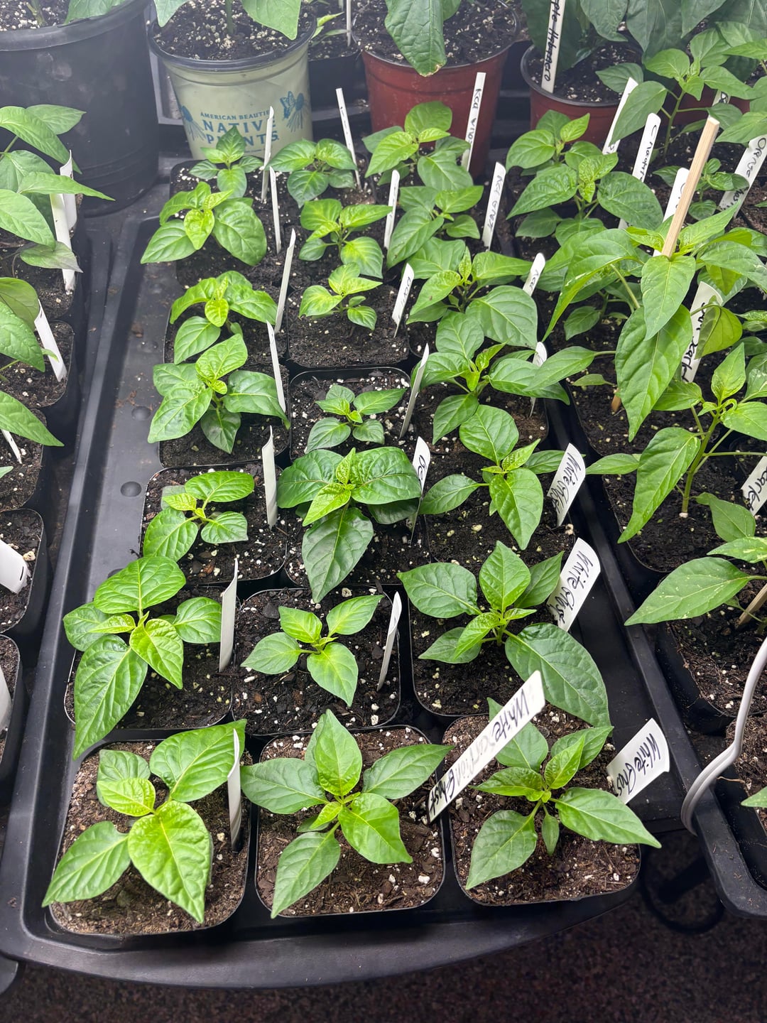 The peppers are looking good! We will have 500 plants this year of 148 varieties. This includes 5 of our crosses. Currently they are still in the grow room but they will go to the greenhouse in a couple of weeks. We also have around 25 growing in a hydroponic system.