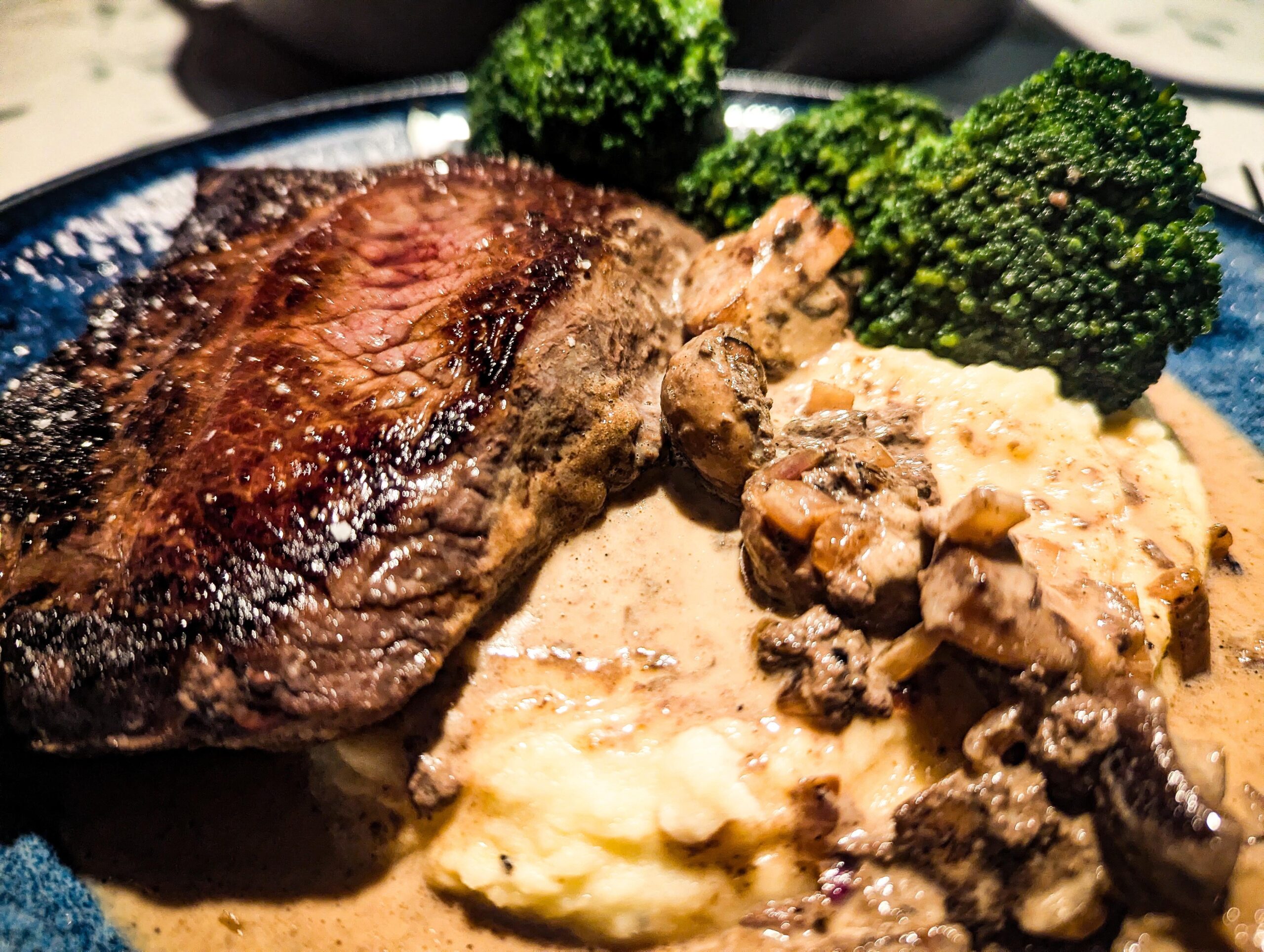 Steak, mushrooms, brocolli……..and a lot of cream and butter.