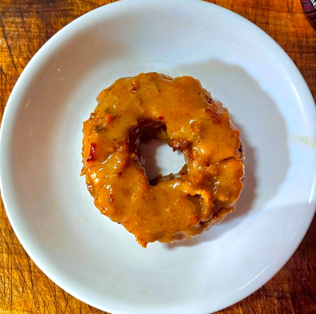 While that's in the oven whisk together some dijon, honey, and hot sauce over low-medium heat then glaze your donut once it's done 🤣