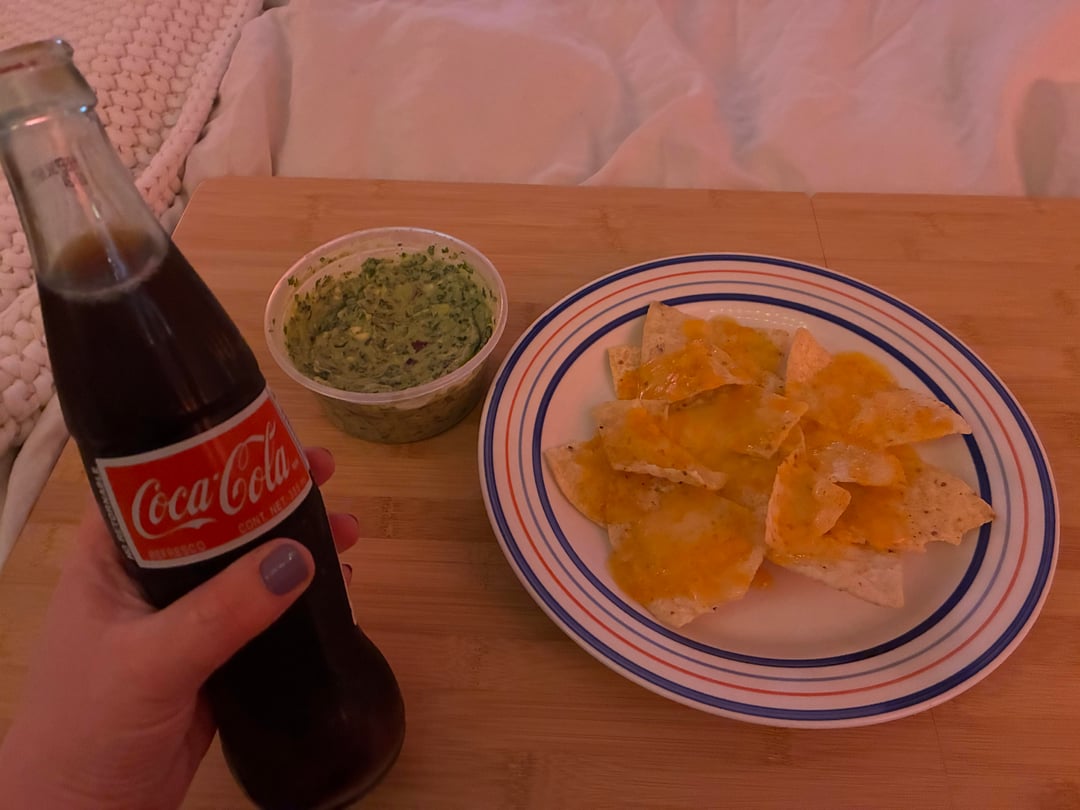 Kept it super simple (sometimes add fresh jalapeño if I have it on hand). Ate it with the laziest nachos in the world (shredded cheddar microwaved on chips) and it really freakin’ hit the spot.