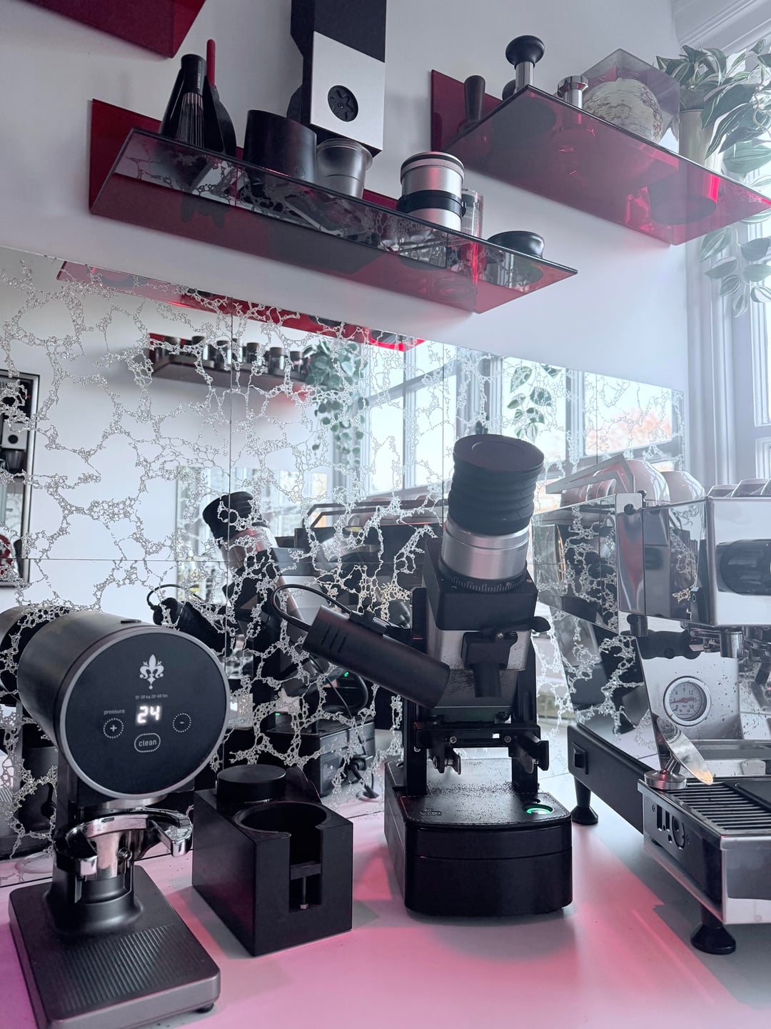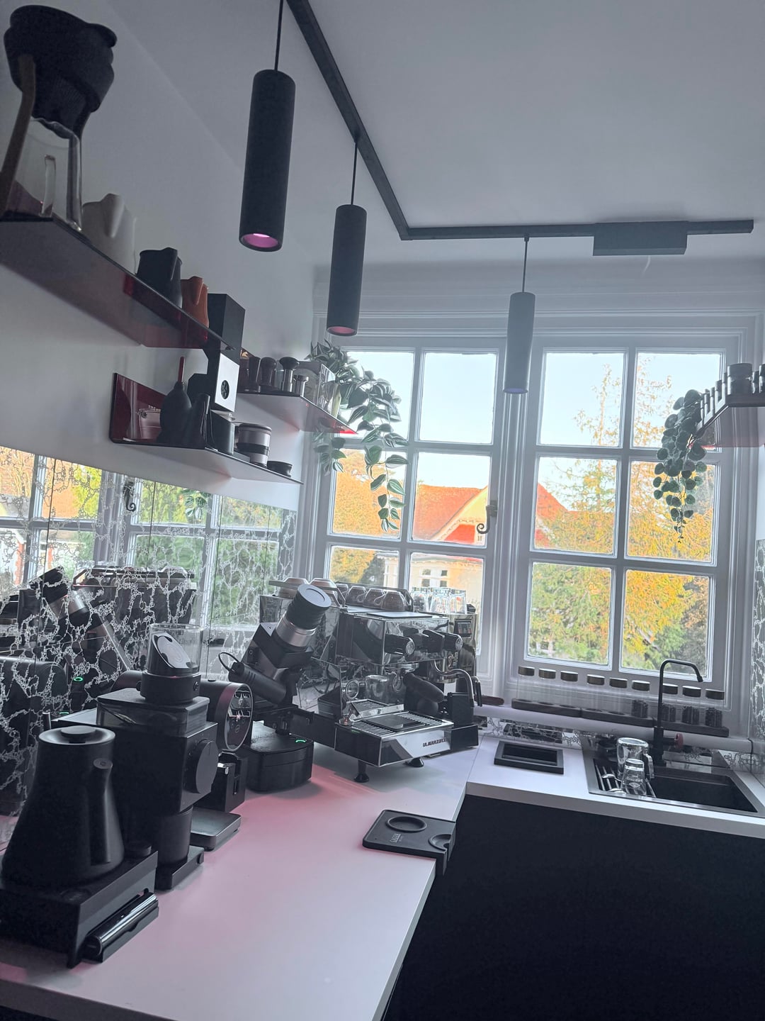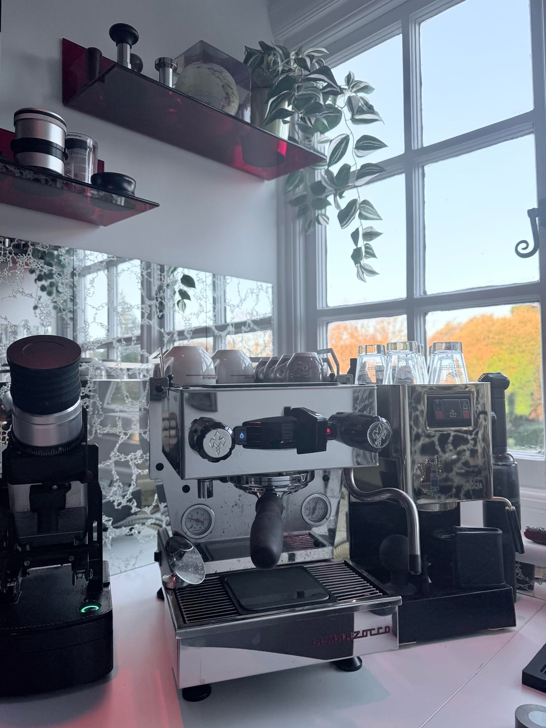 New Coffee Nook 99% complete, moved the set up out of the kitchen after complaints from my spouse, set up a new station in the previously unused 1.5m by 1.3m space off the hallway in our apartment. IKEA kitchen units and counter, vintage NOS 1980s Mirro Tiles, vintage NOS Red Acrylic Shelving, just waiting for vintage 1980s Red Handles for the drawers and doors to arrive and then it’s 100% finished….