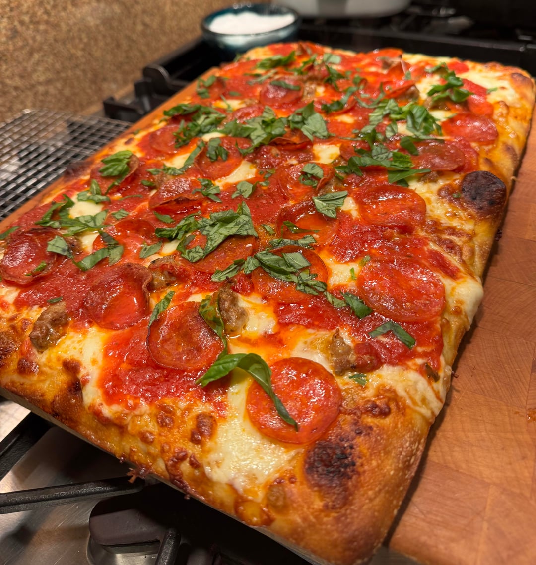 12×18 1.5” Llyod’s Pan – it’s like a cheat code. Next time I’ll grab pic of the crumb,by poknees 6 Comments EONS 7 hours ago Sicilian rocks RomChom94 7 hours ago Looks great! Did you par bake? Do you mind sharing the recipe? hoguensteintoo 7 hours ago Beautiful! FantasticAd9407 7 hours ago Al Taglio __Ocean__ 7 hours ago this…………..is…….a ……beautiful thing. H0RR0RB0Y 7 hours ago The first pic I thought was a duvet.