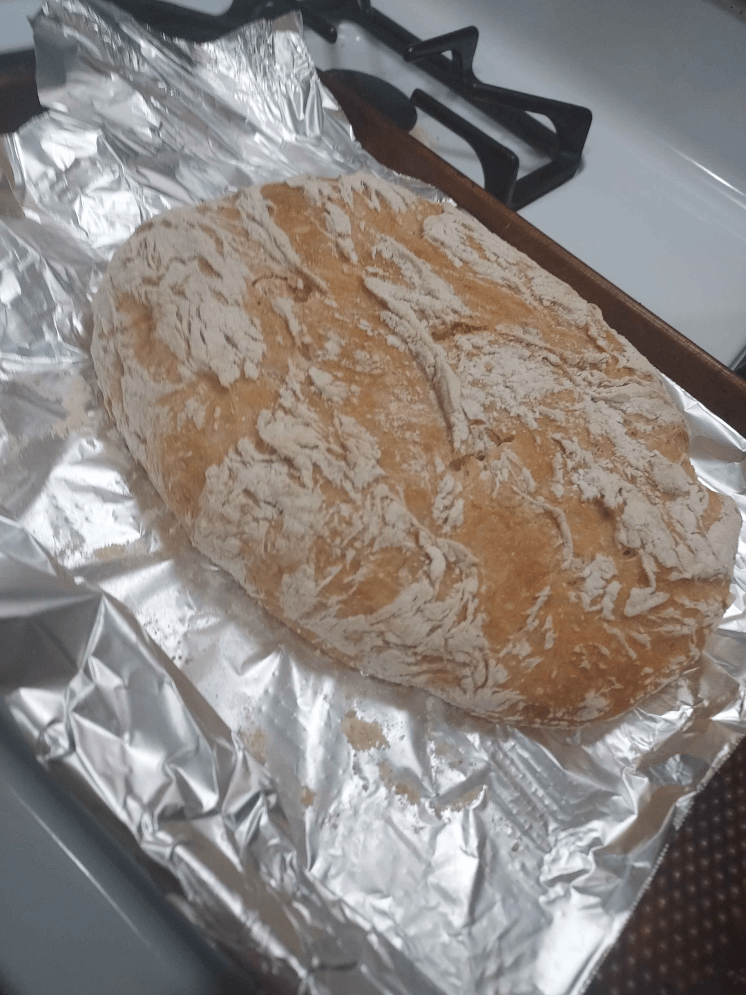 It came out too 'flat' and a little bland, and i think i left it in a bit too long cause the crust was kinda hard, but it was warm, it was simple, and by golly, it was bread