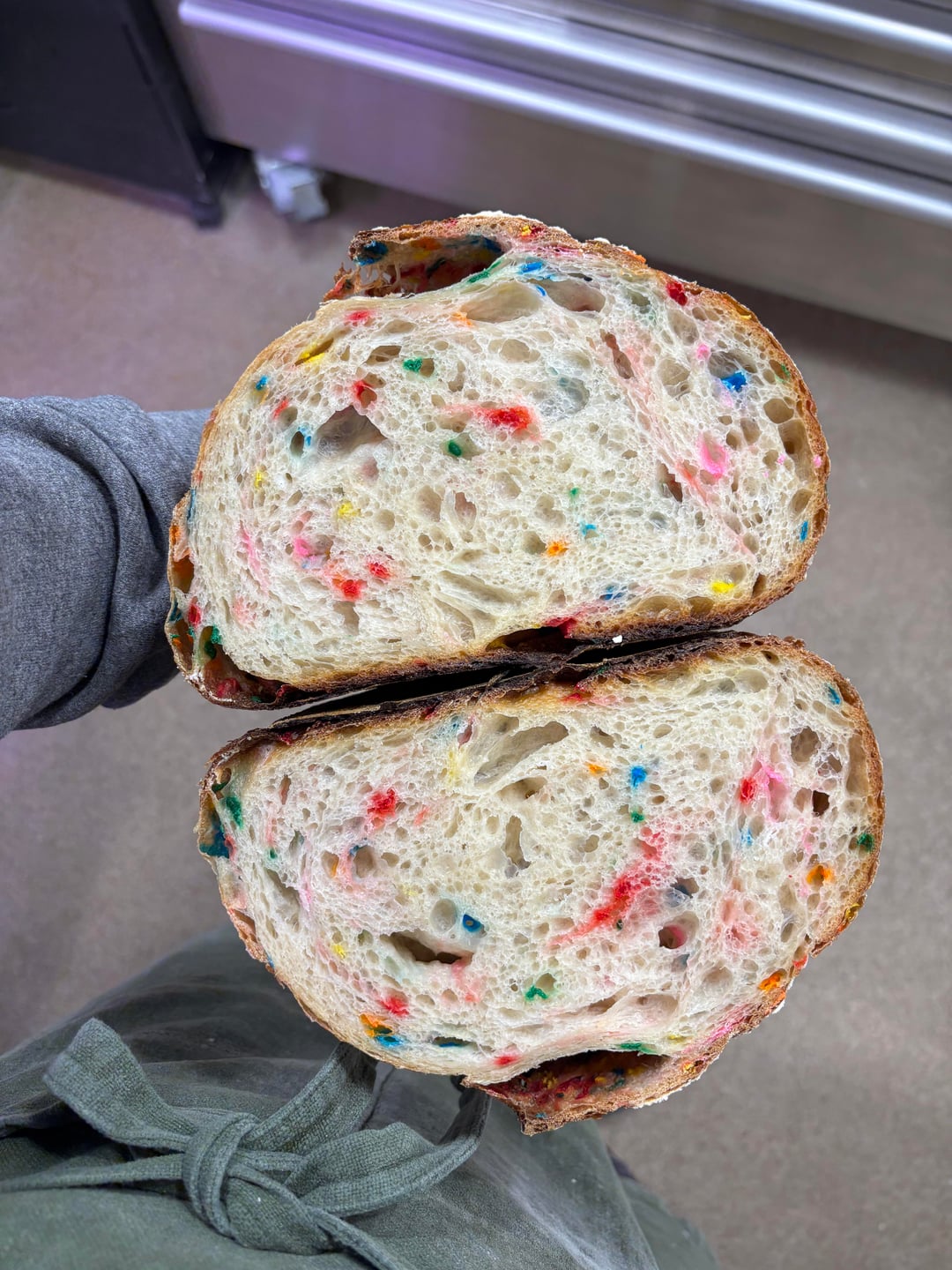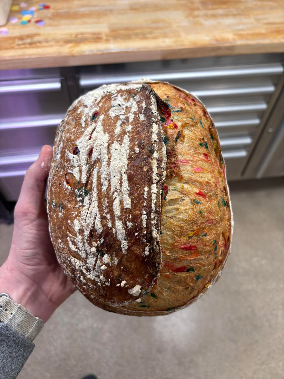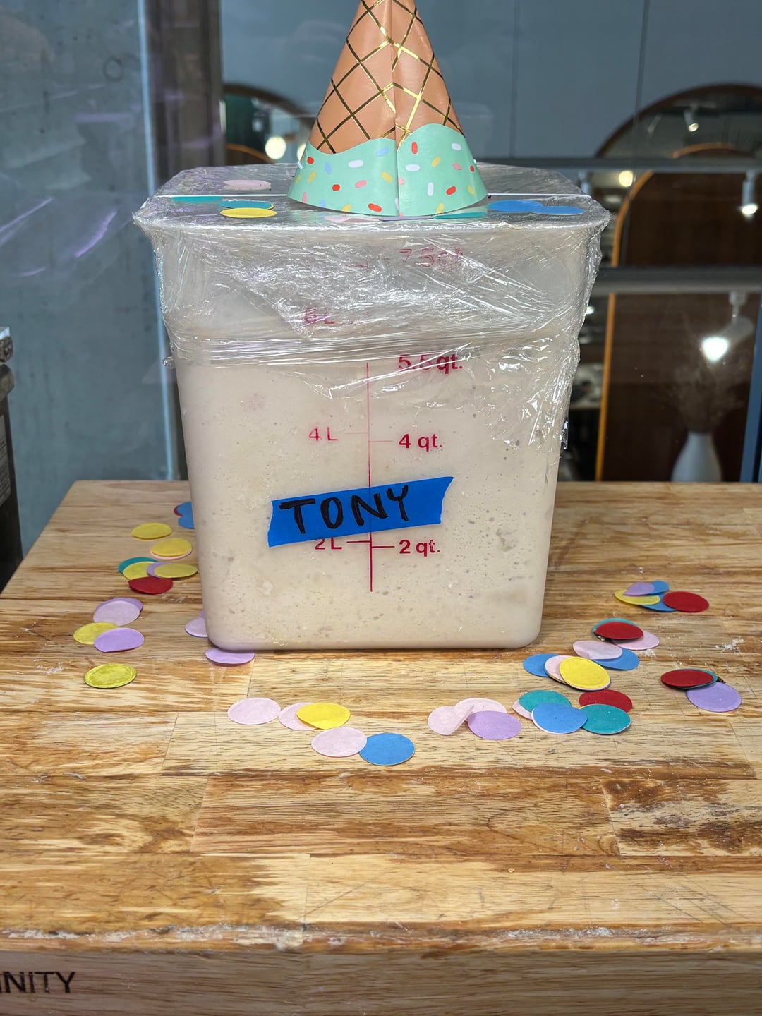 Share Facebook Twitter Pinterest LinkedIn Reddit 50% cake flour 25% bread flour 25% durum flour Inclusions- Sprinkles / honey / Demerara sugar Tony turns 79!!! by breadwizarddelux 3 Comments GoodFood 1 month ago Such a lovely way to celebrate! Happy Birthday Tony! QuiggieQuarrell 1 month ago  Loanyobo 1 month ago Nice job