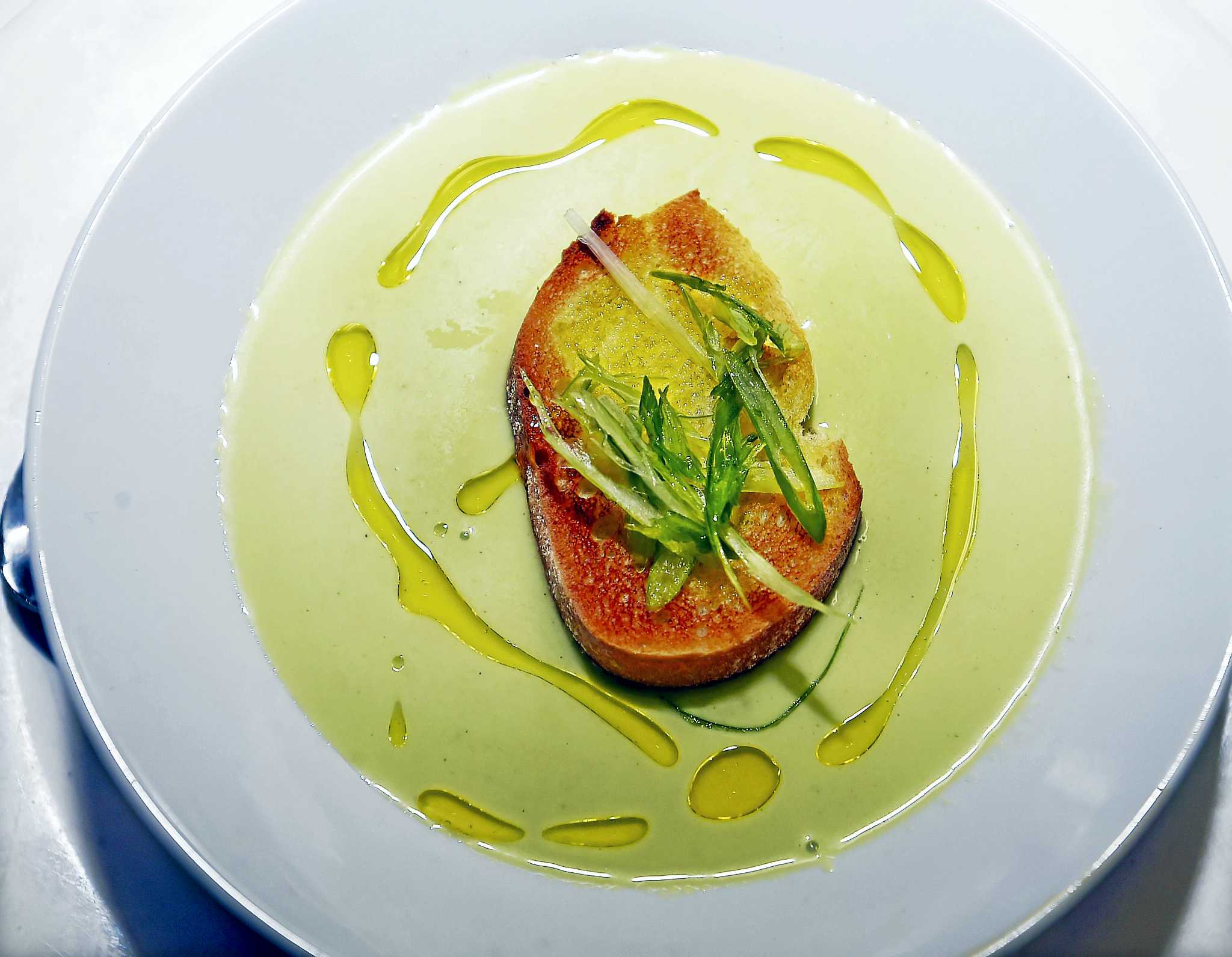 Head chef Mario Gonzalez’s green grape gazpacho soup at Bistro Mediterranean & Tapas Bar in East Haven.