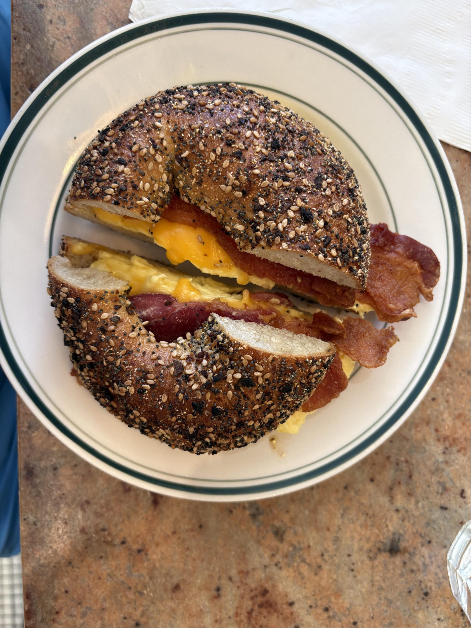 Ggiata can be weirdly controversial in this sub sometimes but I’ve never had a bad experience here! I’ve been many many times and the Spicy P is definitely top 3 sandwiches of all time for me. I’m under the impression they get their bagels from Jyan Isaac Bread, and I’m a big fan! Really delicious everything bagel, the egg is soft but well cooked, and I chose American cheese because it seems standard for a BEC. Bacon was crispy and flavorful! $12 before tax and tip, which I think is too expensive, but not expensive enough for me to never get it, I just order it very infrequently. The Spicy P is definitely a better deal but also too expensive for me to get it as frequently as I want to.