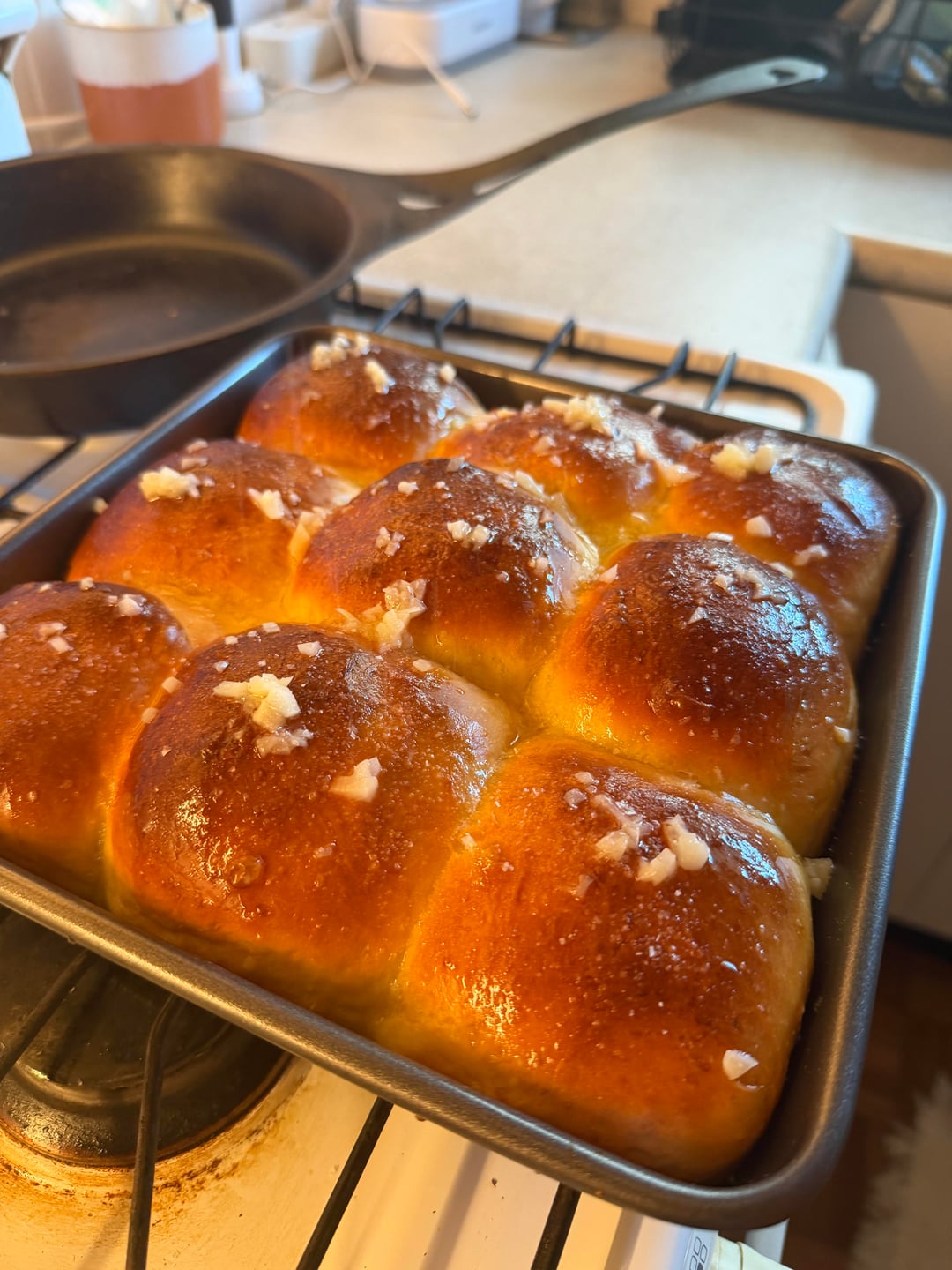 Share Facebook Twitter Pinterest LinkedIn Reddit Tried my hand at Joshua Weissmans Hokkaido dinner roll recipe. Basically shokupan in a dinner roll shape with garlic butter. Absolutely delish by fungusbungusbus 4 Comments LucidAnimal 1 month ago Looks phenomenal! Great job No-Kaleidoscope-166 1 month ago Yum! 🤤 Environmental_Peak_7 1 month ago These look absolutely delicious wow! Ok-Material-2266 1 month ago Sounds just delightful. Need to add this to my list of recipes to try!