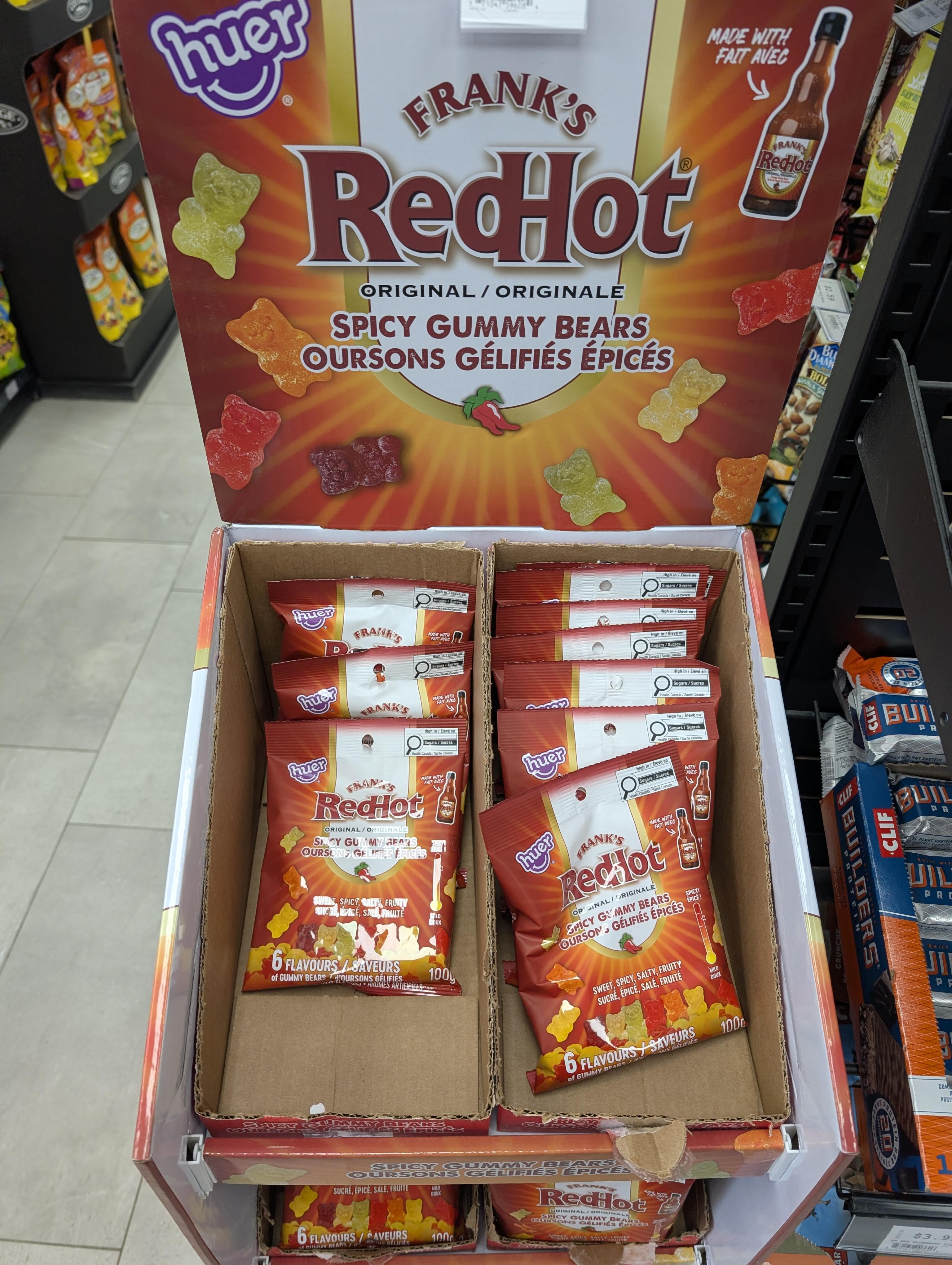 Spicy gummies are really good but it’s usually a chili powder sugar mix or tajin on top of it. I don’t think franks is a good flavor choice for this kind of thing.