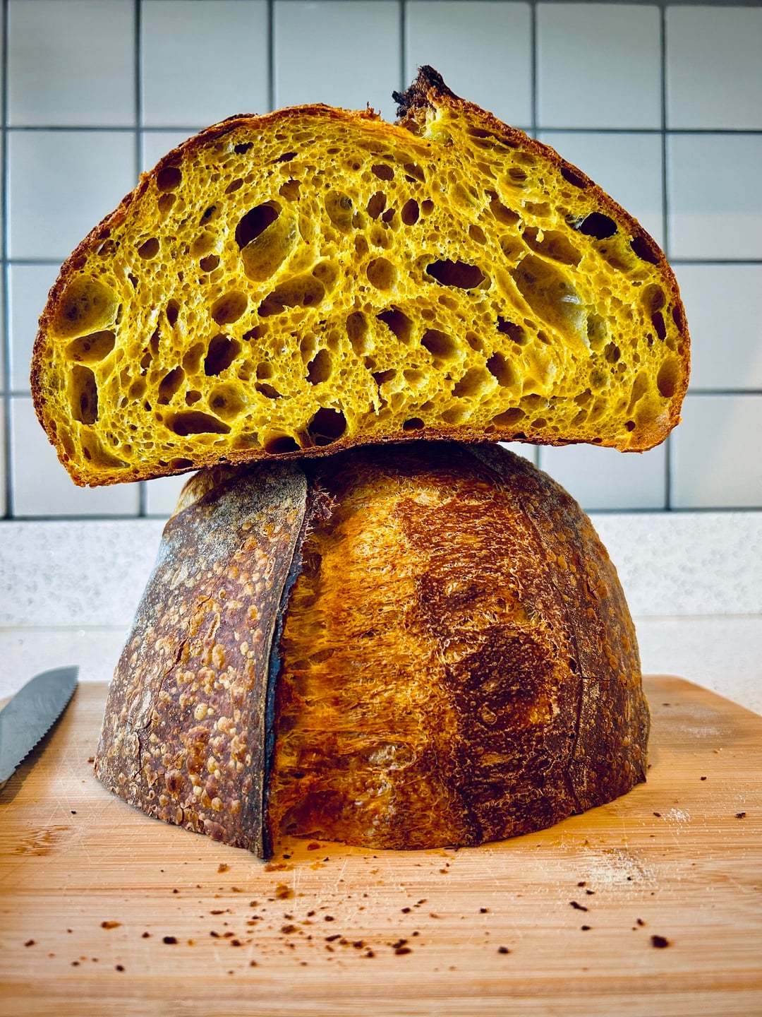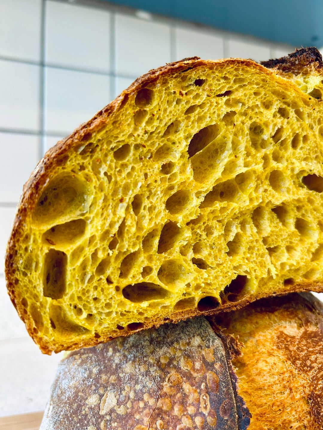 Fresh sourdough loaf with a teaspoon of turmeric! It almost lools like pannetone 🙂