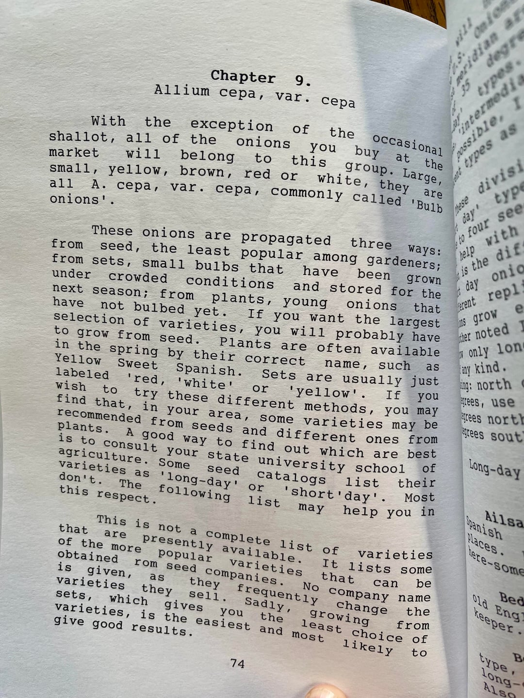 An older book I found at a second hard store about 20 years ago. Dated 1992 and has a type written looking font. Great old reference for allium growing in Illinois, specifically. It’s a good time to start some seeds indoors under light but not quite time to put out your sets.