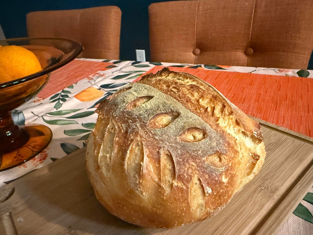 Unsure how old my starter is. I inherited some of it from a co workers mom. But I’m at the point with it where I remove my starter from the fridge about 8ish hours before I want to be able to bake with it. I don’t measure feedings or what not. I go by how consistency (thicker pancake batter + smell). I fed it yesterday morning and noticed it was a little acidic smelling and even though it doubled I decided to stir it down and add a couple tbl spoons of bread flour until I liked the smell and it rose again and I made my dough around 730pm yesterday.