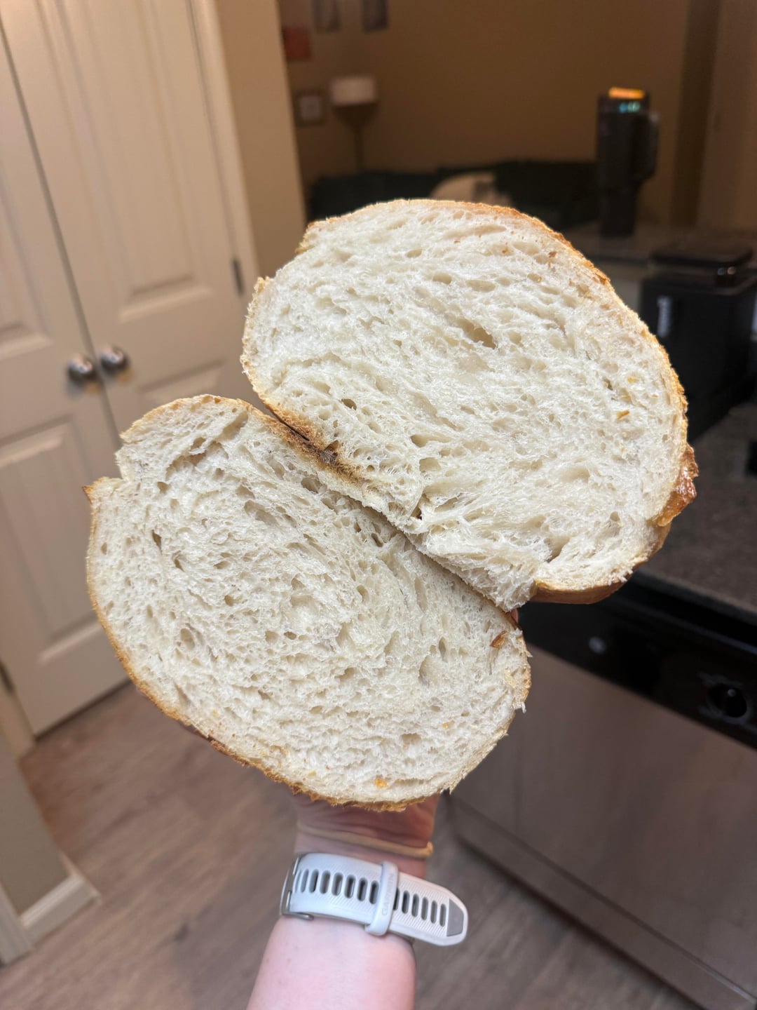 I then place dough onto floured tea towel in a tighter/smaller sized bowl , seam side up. And cold proof for 12-13 hours. Today was 13 I was busy.