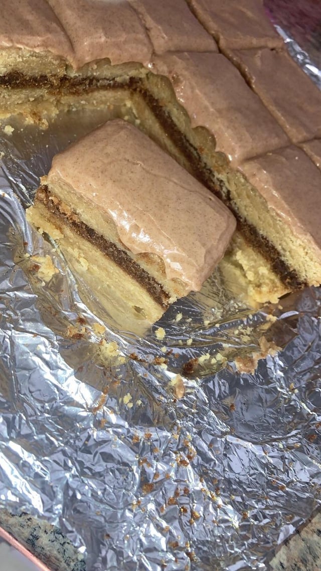 Base: 2 sticks of butter (room temp) 1/2 cup brown sugar 3/4 cup powdered sugar 1 egg 2Tsp vanilla 1Tsp baking powder Pinch of salt 2 1/2 cups flour