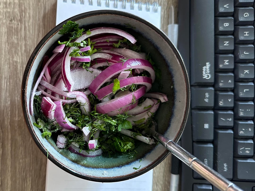 Red onion, dill, parsley, salt, sugar, apple cider vinegarโฆby obsessed_9_depressed 9 Comments Minimum-Pangolin-487 3 days ago Are you game enough to take it to work? banjo215 3 days ago Looks delicious. Hope any meetings after that are on Teams though ๐ psychedellen 3 days ago Looks delicious, but I would need to add some protein to make it through the day. Such-Top-6896 3 days ago Iโd be waiting for the pizza delivery! Annual-Bumblebee-310 3 days ago Looks sooo good. My boss wouldโve sent me home LOL Loedpistol 3 days ago Where dem carbs honkyponkydonky 3 days ago  Liverspots598 3 days ago Yess girl I just saw your post on realgirldinner. So glad I have a kindred food spirit out there Alucardis666 3 days ago YUM!