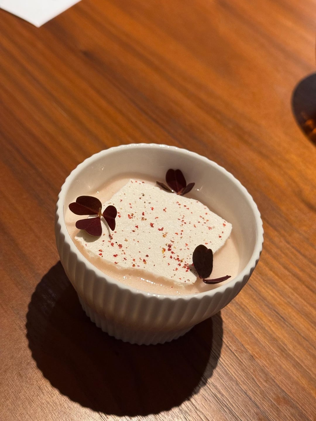 Pre-dessert (quince, flowers, pink peppercorn) worked nicely as a palate reset.