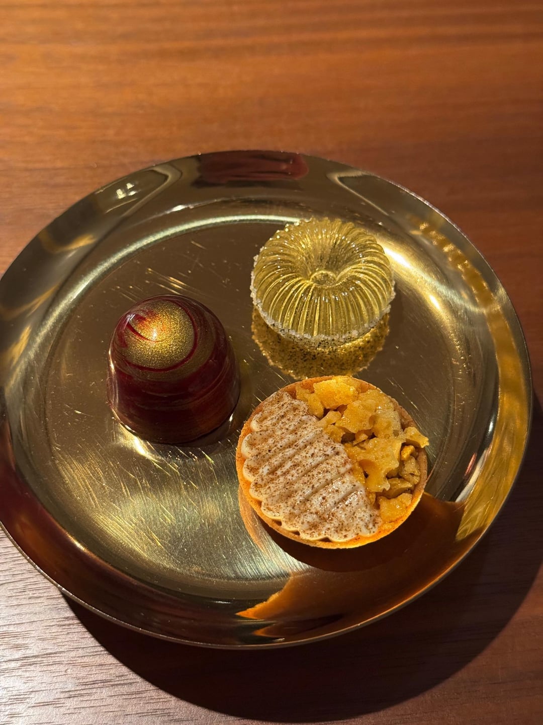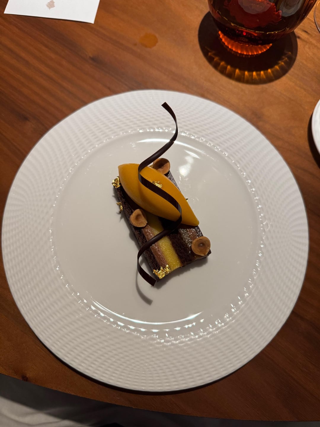 The main dessert—dark chocolate, hazelnut, and apricot délice—completely blew me away (second time that evening).