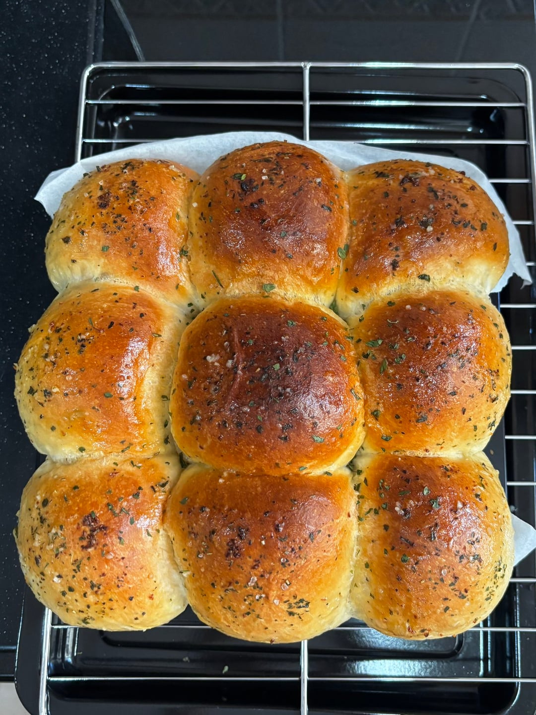 Recipe here : https://garlic-butter-dinner-rolls-soft-fluffy-and-brushed-with-irresistible-flavor/
