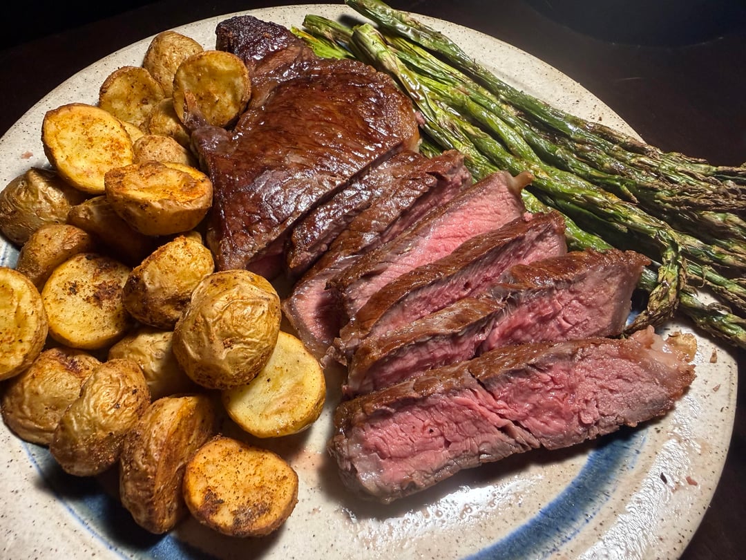 Perfect medium rare though agree as a Sharper Knife would slice the meat a bit thinner! But great cooking job!
